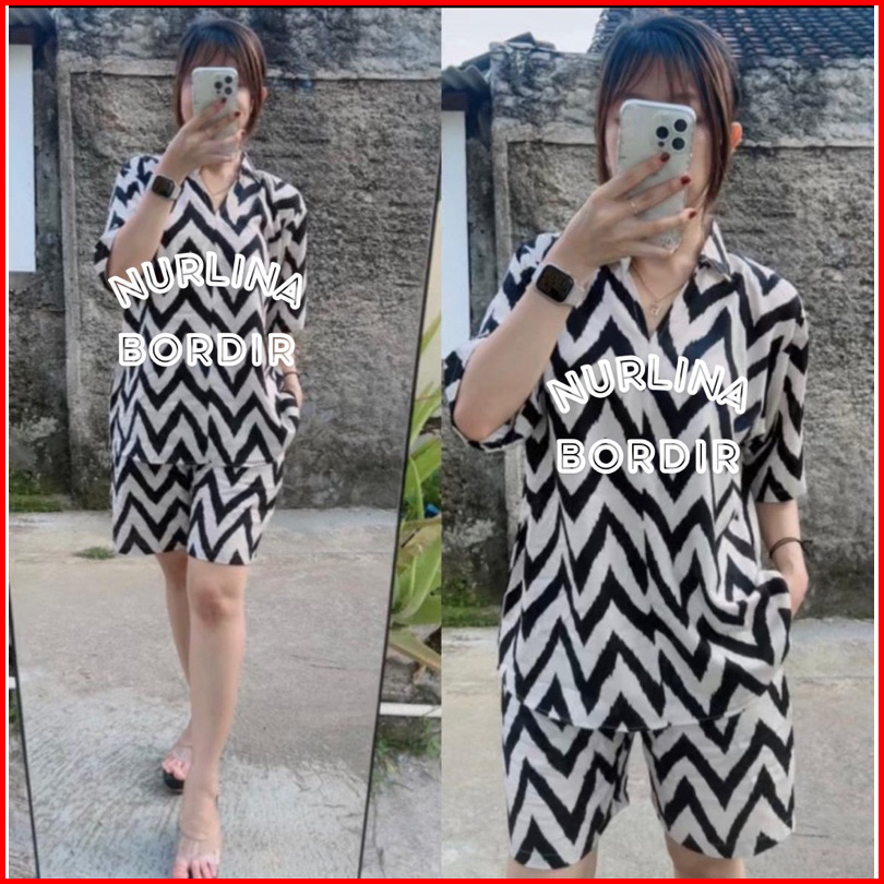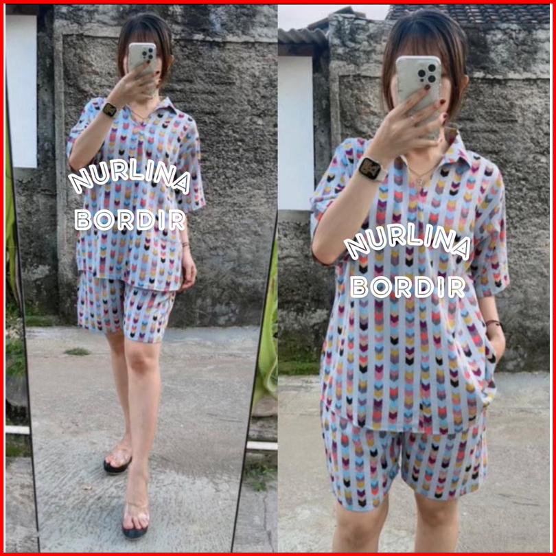 One Set Stelan Piyama Kerah Kantong Motif Rayon Premium Grade A