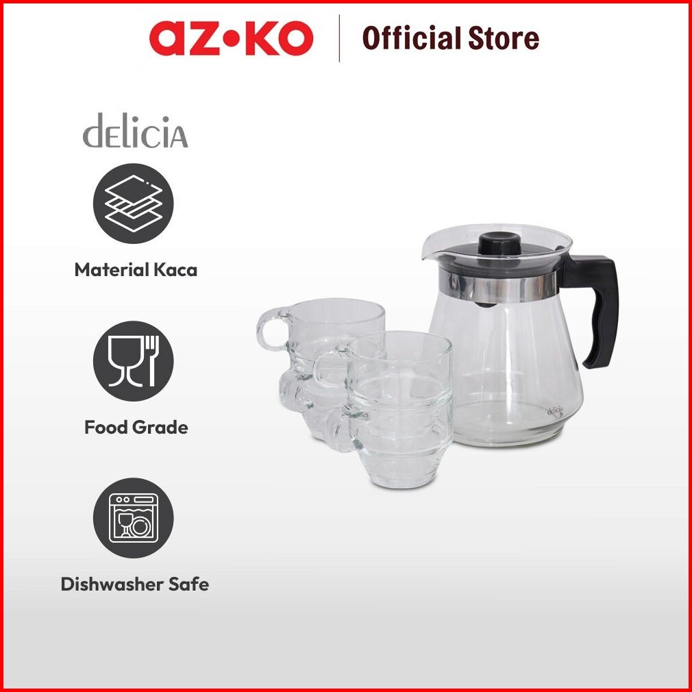 Azko Delicia Set 5 Pcs Teko Dan Cangkir - Hitam Set Water Jug With Glass Pitcher Dengan Tutup Dan Handle Wadah Penyimpan