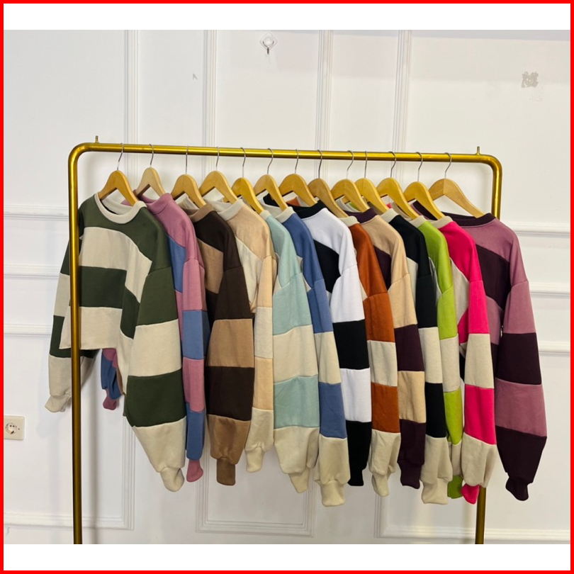 Sweater Strip Oversize Croope Sweater Twocolour Strip Wanita