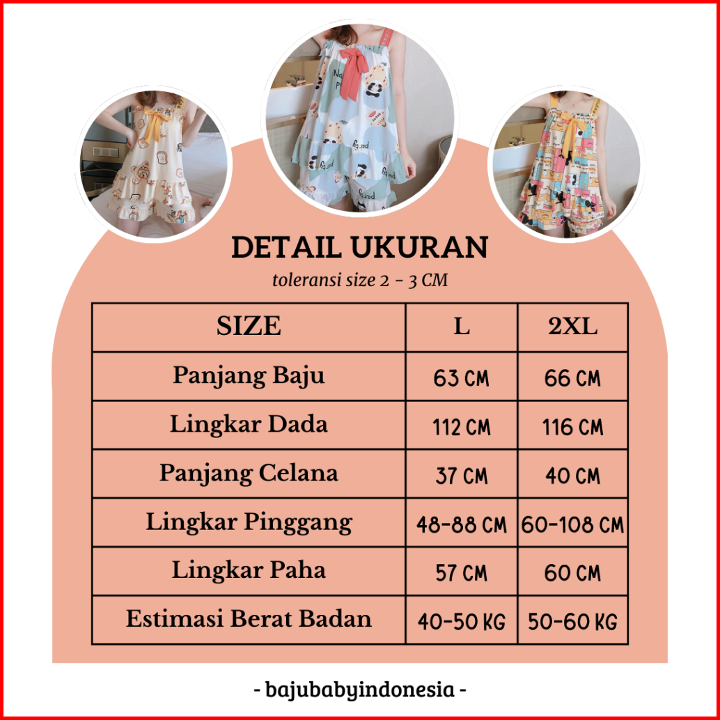 Bbi Piyama Wanita Dewasa Motif Karakter Animasi Lucu Set Baju Tidur Perempuan Lengan Kutung Celana Pendek Bahan Katun Po