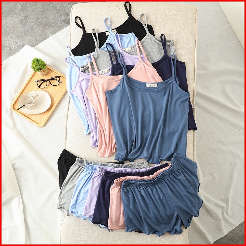 Ggs Baju Tidur Set Wanita Kamisol Setelan Piyama Tank Top Dan Celana Pendek Sexy Nyaman Camisole Korea Style Sampai Size