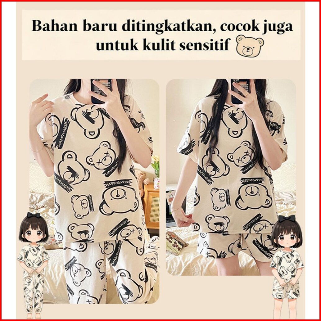 Piyama 4 Set Wamita Dewasa Jumbo Lembut Dan Dingin 4in1 Baju Tidur Set Daster Celana Pendek Celana 3 4 Wanita Setelan Pi
