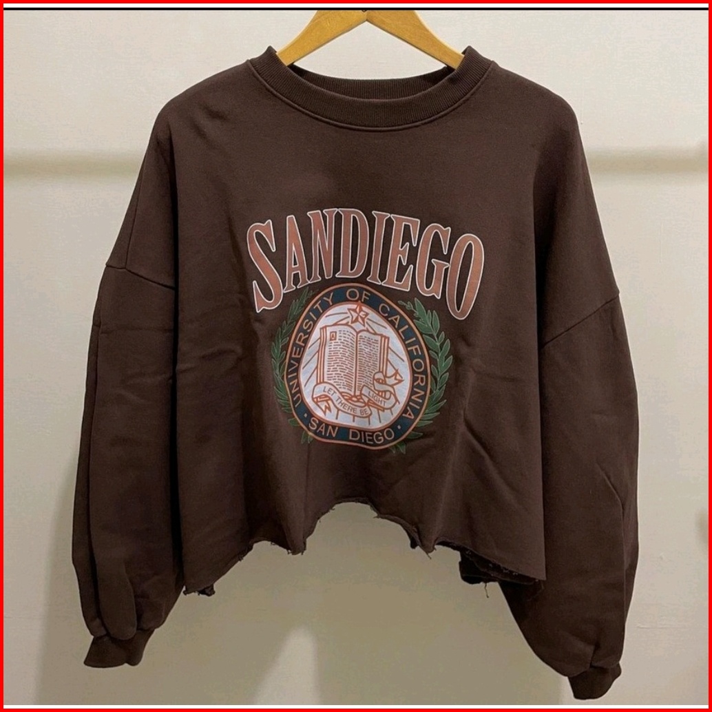 Sandiego Chocolate Sweater Croope Oblong Crewneck Wanita
