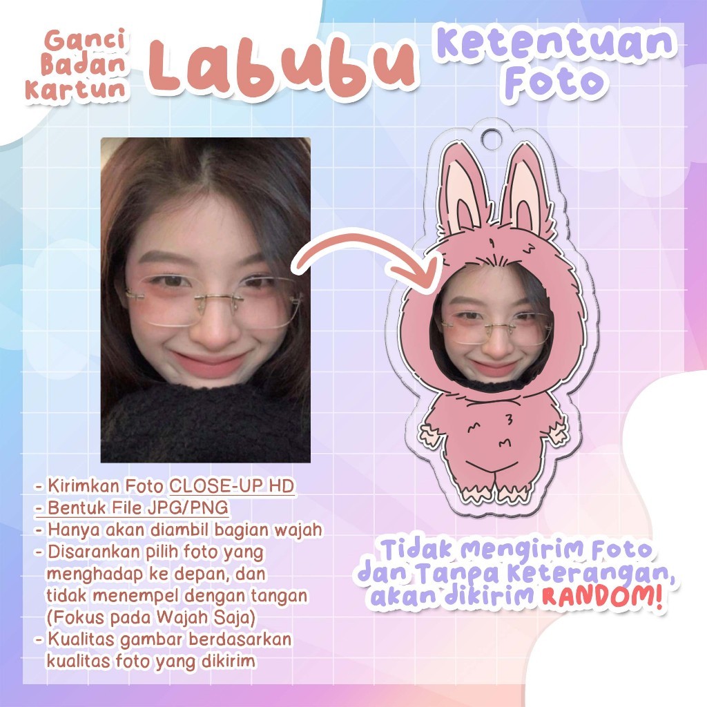 Ganci / Gantungan Kunci Custom Face - Desain Karakter LABUBU - CUSTOM FOTO WAJAH FACE - kode GCFC_LBB