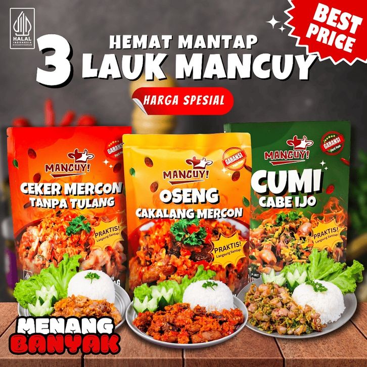 Paket Makanan Mancuy 3 Pack | Oseng Iga Ceker Cakalang Cumi Mercon Pedas