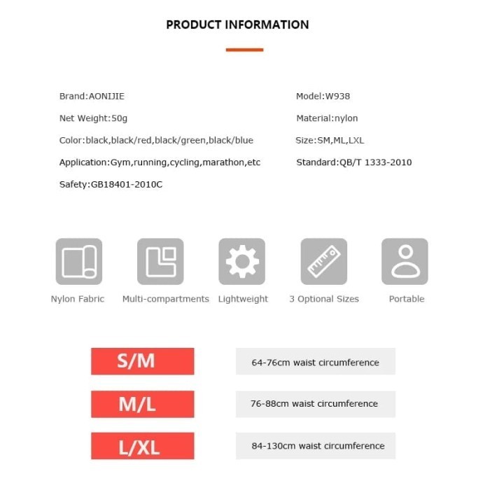 Aonijie W938 Waist Bag Tas Pinggang Lari Elastis
