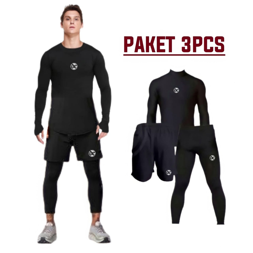 Fullset Manset Lengan Panjang Pria Celana Sport Futsal dan Legging Baselayer Running Jogging Gym