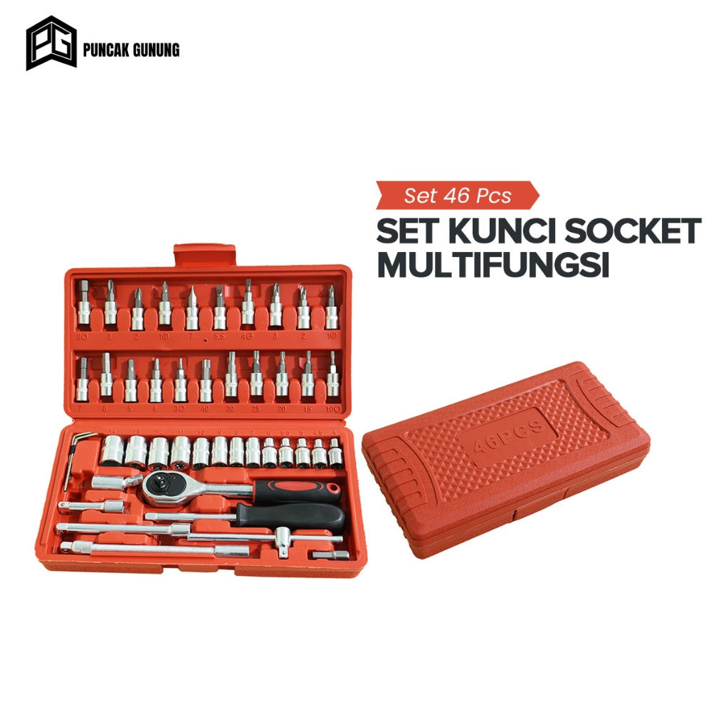 Set Kunci Socket 46 Pcs Kunci Ring Pas Ratchet Serbaguna Mobil Motor Mesin Busi Lengkap - G2C1