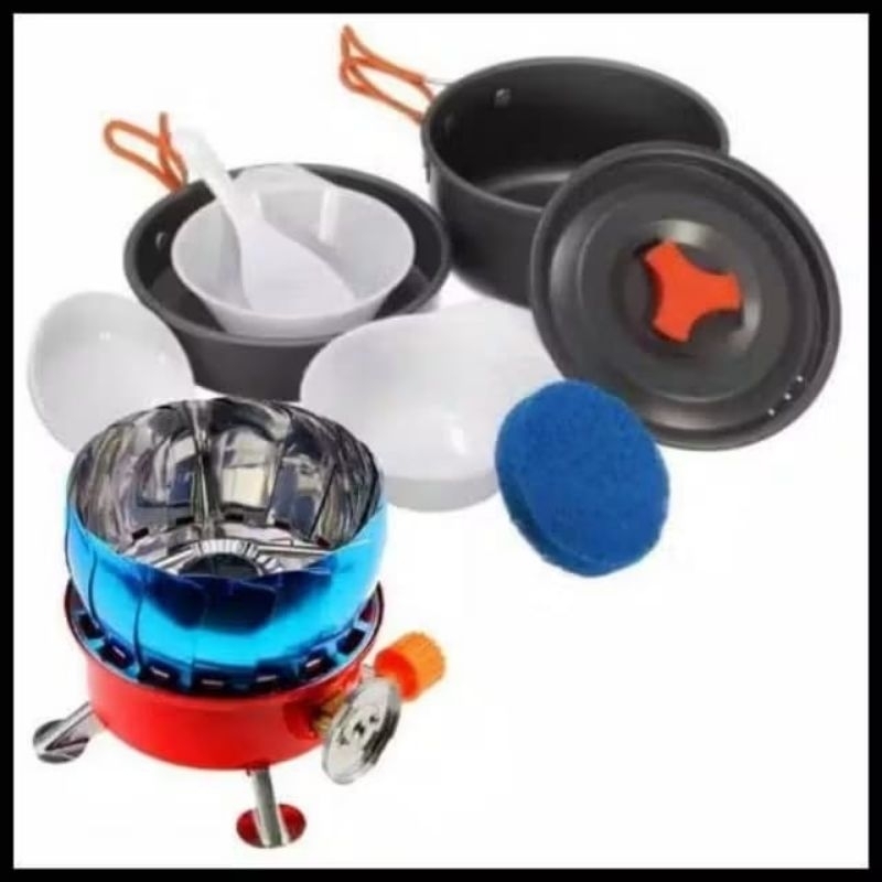 paket cooking set ds 308 dan kompor windproof cooking set ds 308 alat masak camping cooking set ds 308 dan kompor windpr