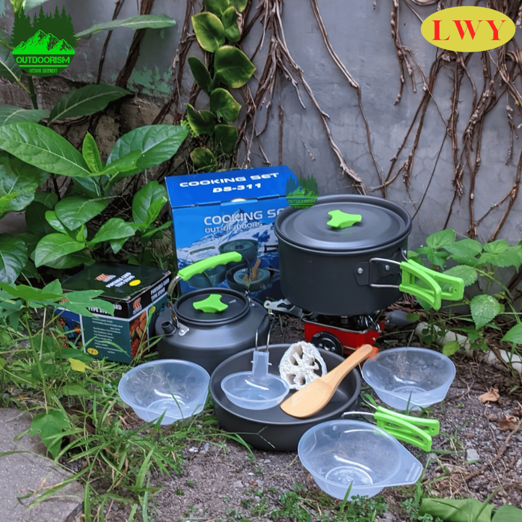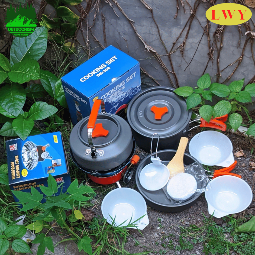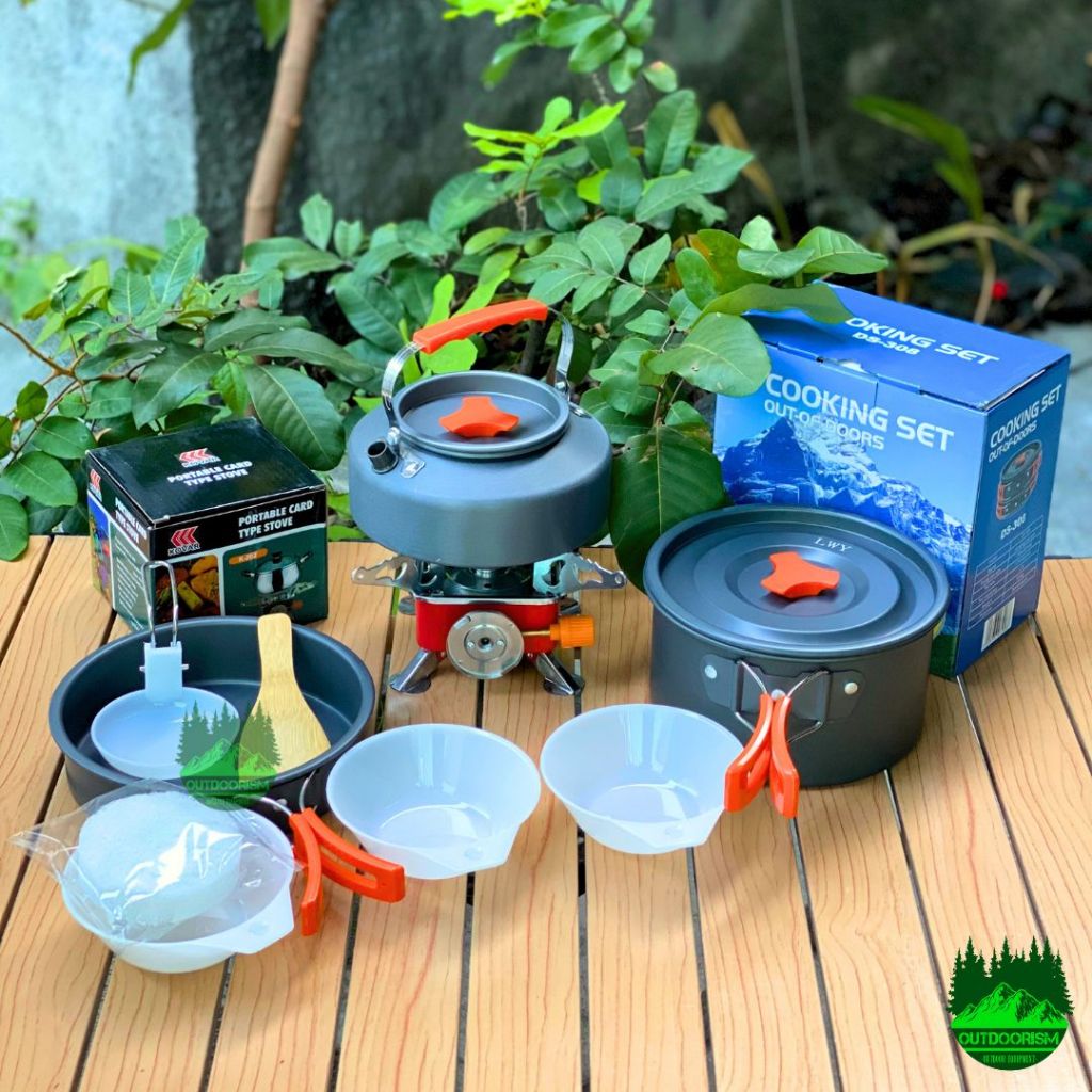OUTDOORISM || Paket Hemat Cooking Set + Kompor Gas Camping Portable Alat Masak Camping Portable