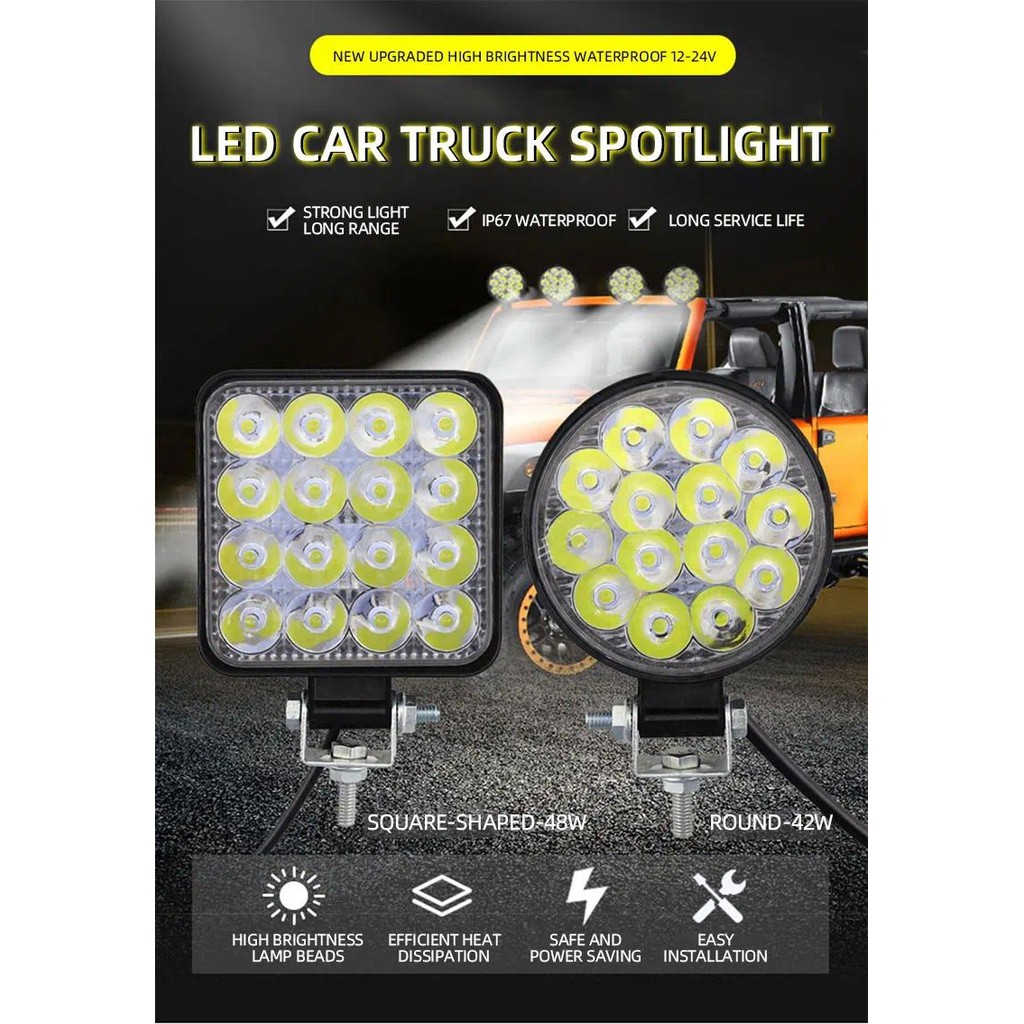 1 pcs 48 W Mobil LED Bar Lampu Kerja MINI 16SMD Bulat Persegi Lampu Kerja 12 V Lampu Otomatis Lampu Kabut off Road untuk ATV SUV Lampu Sorot