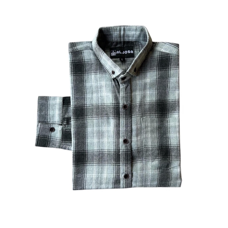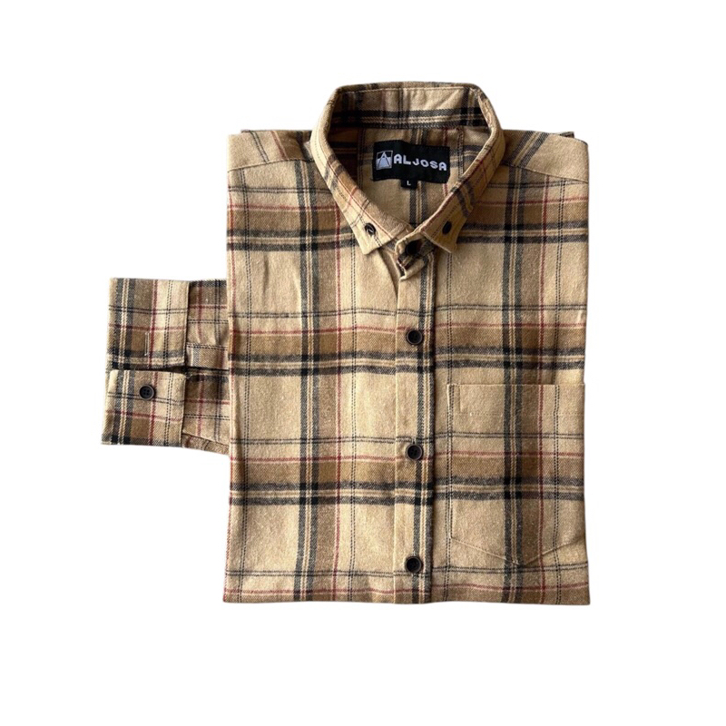 ALJOSA Kemeja Flannel Pria Lengan Panjang Hem Flanel Baju Cowok Motif Kotak Kotak Premium