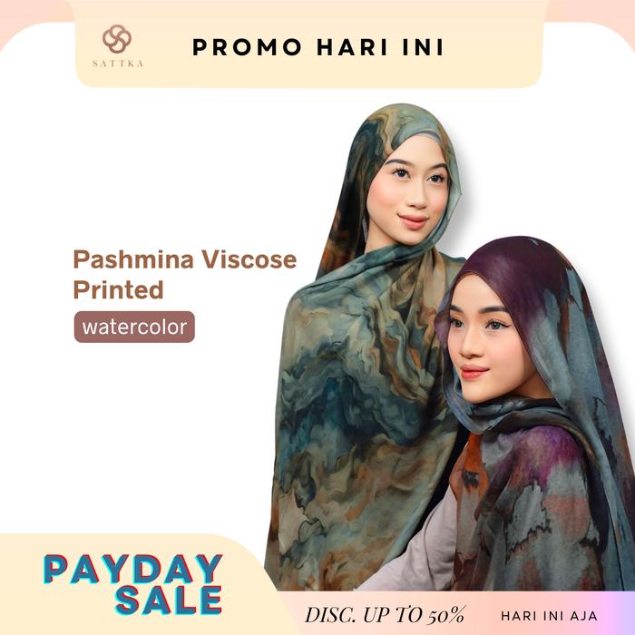 Pashmina Viscose Printed - Motif Corak Sattka | Watercolor Viscose - Aurora