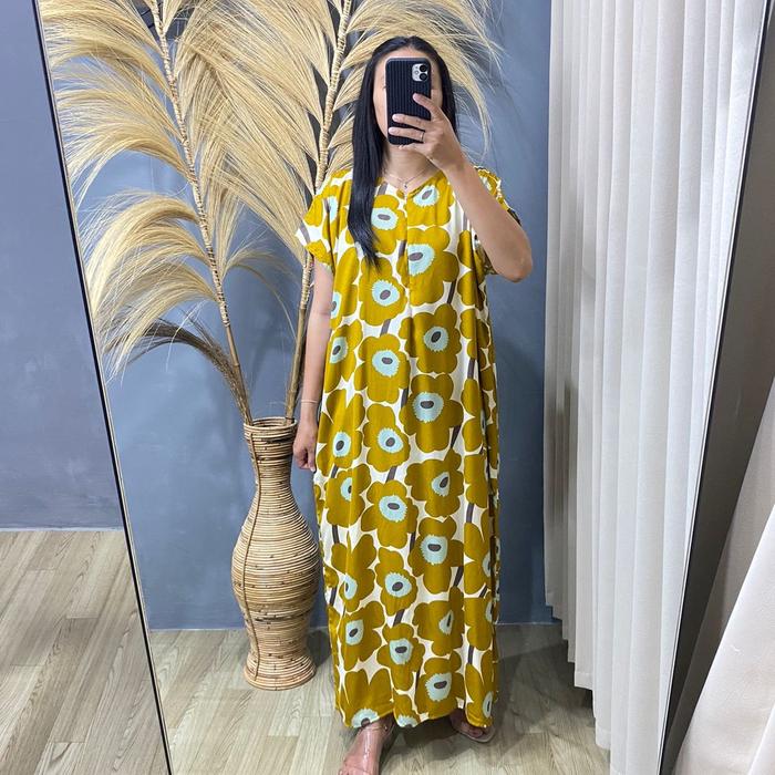 Daster Kekinian Motif Busui Semata Kaki Nyaman Panjang Rayon Santai Bumil Bukan Pendek Lembut - Raflesia Mustard