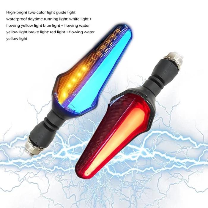 BOBLTECH Lampu Sein Motor Led Running | Flowing Dua Warna Fitur DRL | Rem motorcycle - Putih Kuning