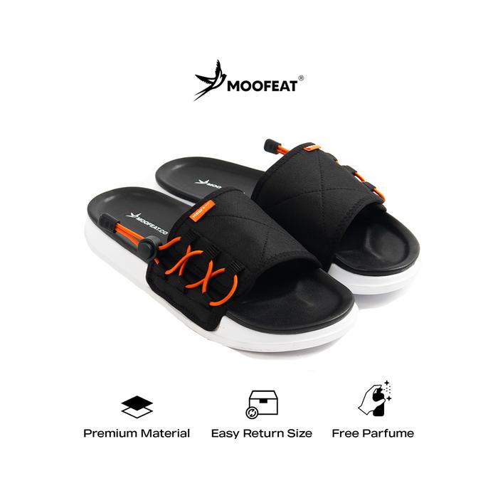 Sandal Pria Slide Slip on Cordura Adjustable Black Orange Moofeat Kevlar Shoes Selop Sendal - Full Black 39