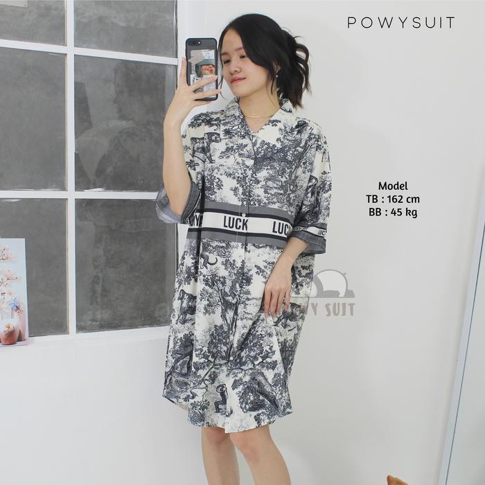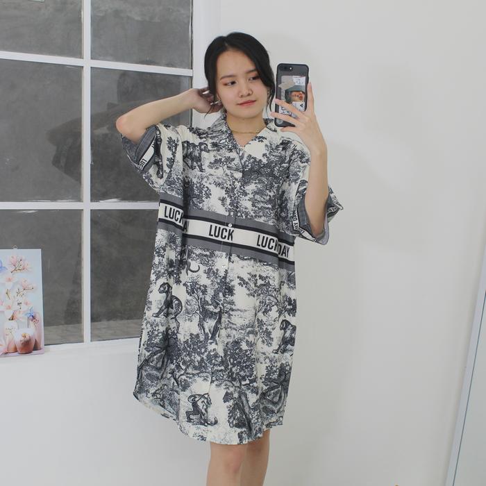 GN18 Lucky Day Daster Powysuit Dress Wanita Satin sutra Dewasa Motif Kancing Baju Tidur Busui Bumil - GN18 Lucky Day