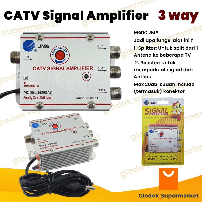 Booster Splitter Antena TV CATV Signal Amplifier JMA 3 way 20db - tanpa bubble