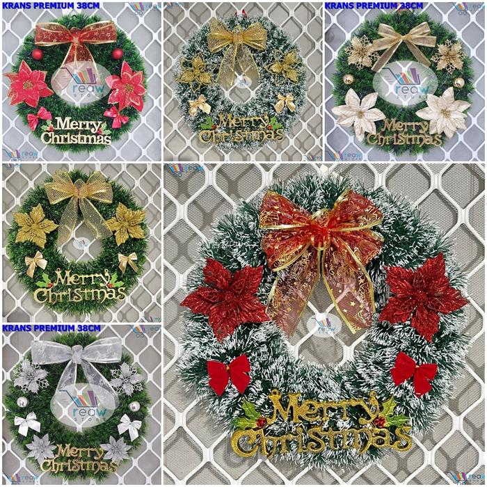 PREMIUM Krans Wreath Hiasan Dekorasi Pintu Natal Merry Christmas - Gold