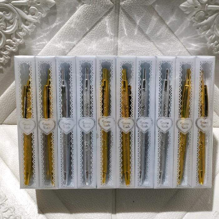 SOUVENIR PULPEN ISI 100 PCS KEMAS MIKA CANTIK souvenir Pernikahan Gold Silver Stationery - - -