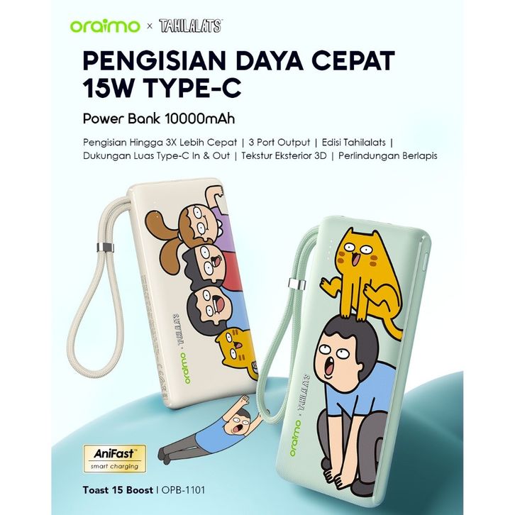 oraimo x Tahilalats Powerbank Toast 15 Boost OPB-1101 Fast Charging Charger Power Bank 10.000mAh 15W