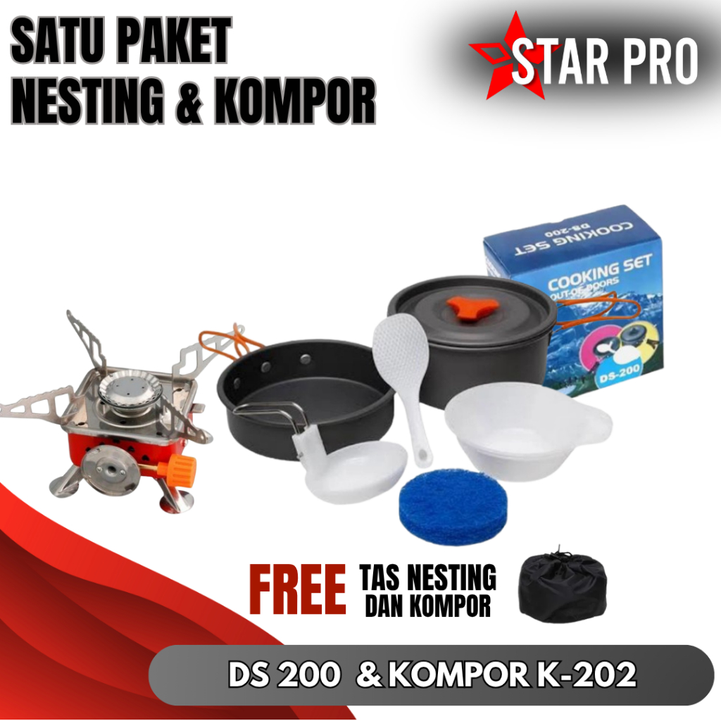 Paket Hemat Kompor Dan Wajan Cooking Set DS200 & Stove Portable K202 Camping Outdoor