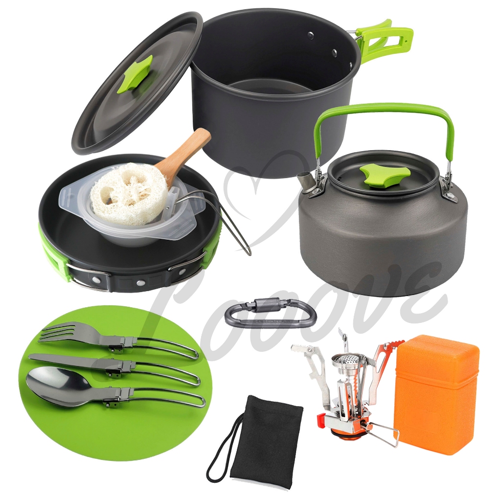 Paket Lengkap Alat Masak Camping 17PCS – Cooking Set + Kompor Outdoor Serbaguna