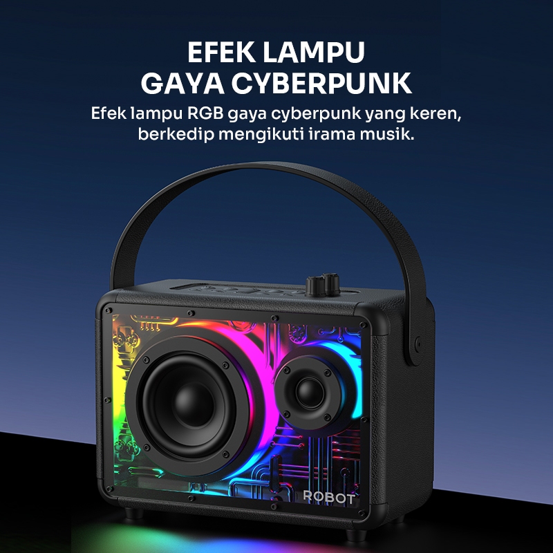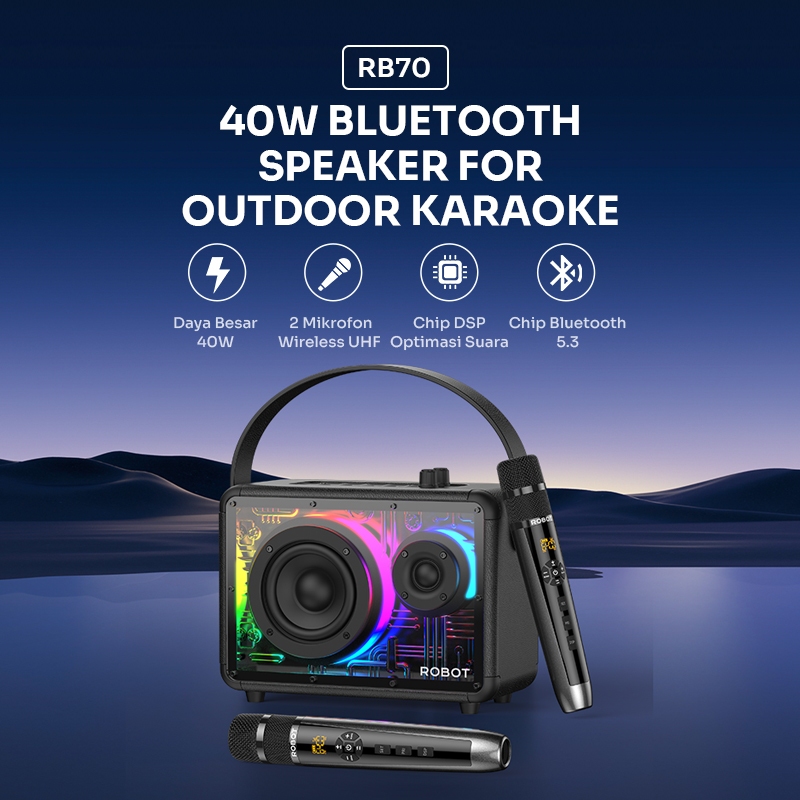ROBOT Speaker Karaoke Outdoor RGB 40W RGB Bluetooth 5.3 With 2 Microphone Wireless UHF Speaker Super Bass Chip DSP RB70