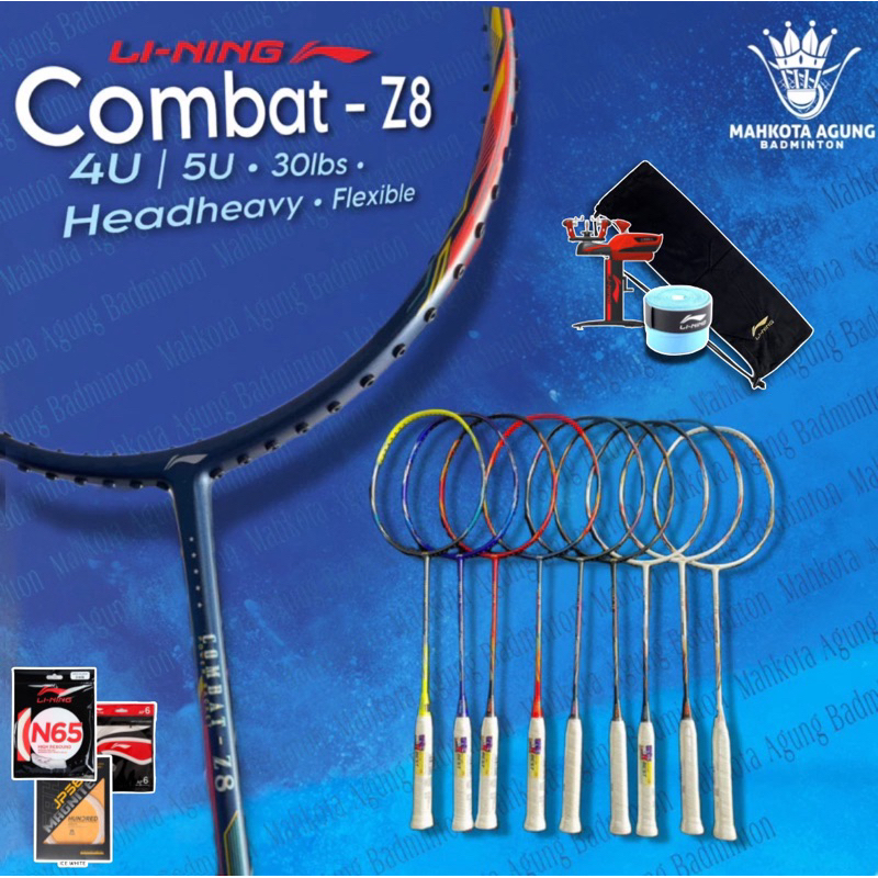 RAKET BADMINTON LINING COMBAT Z8 / COMBAT-Z8 80 GR 84 GR ORIGINAL terbaru lengkap bonus tas baju senar free pasang digit