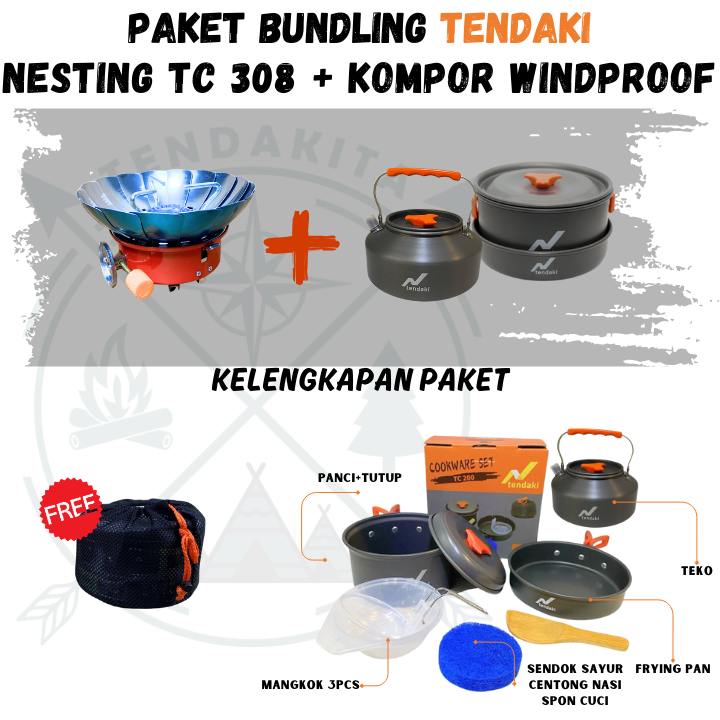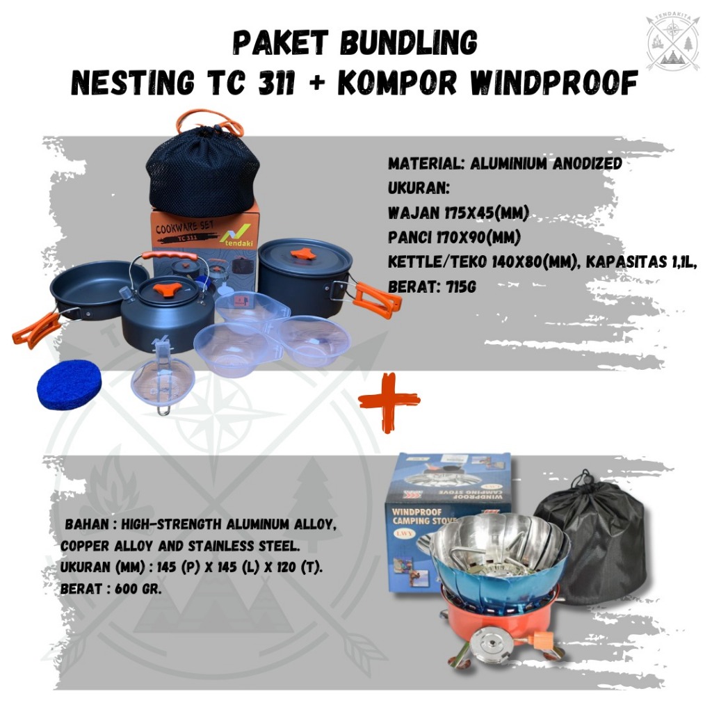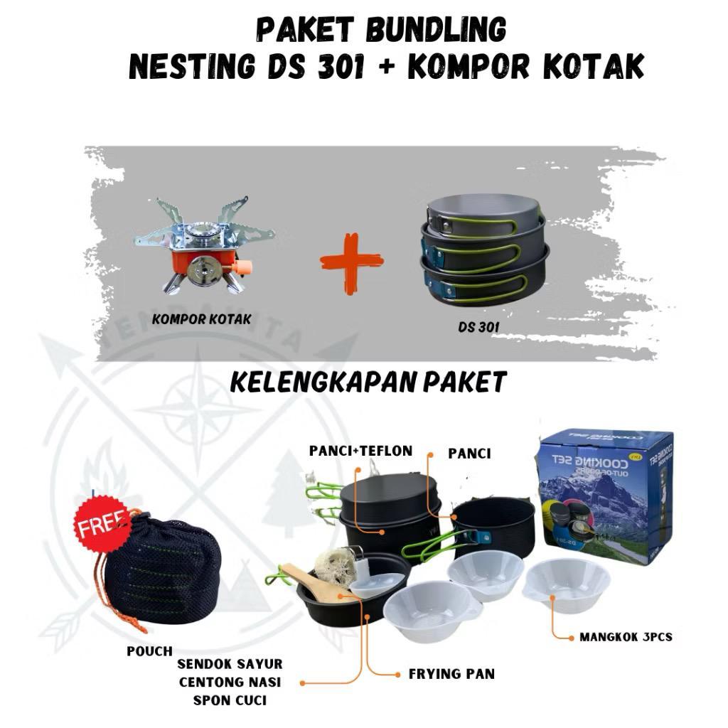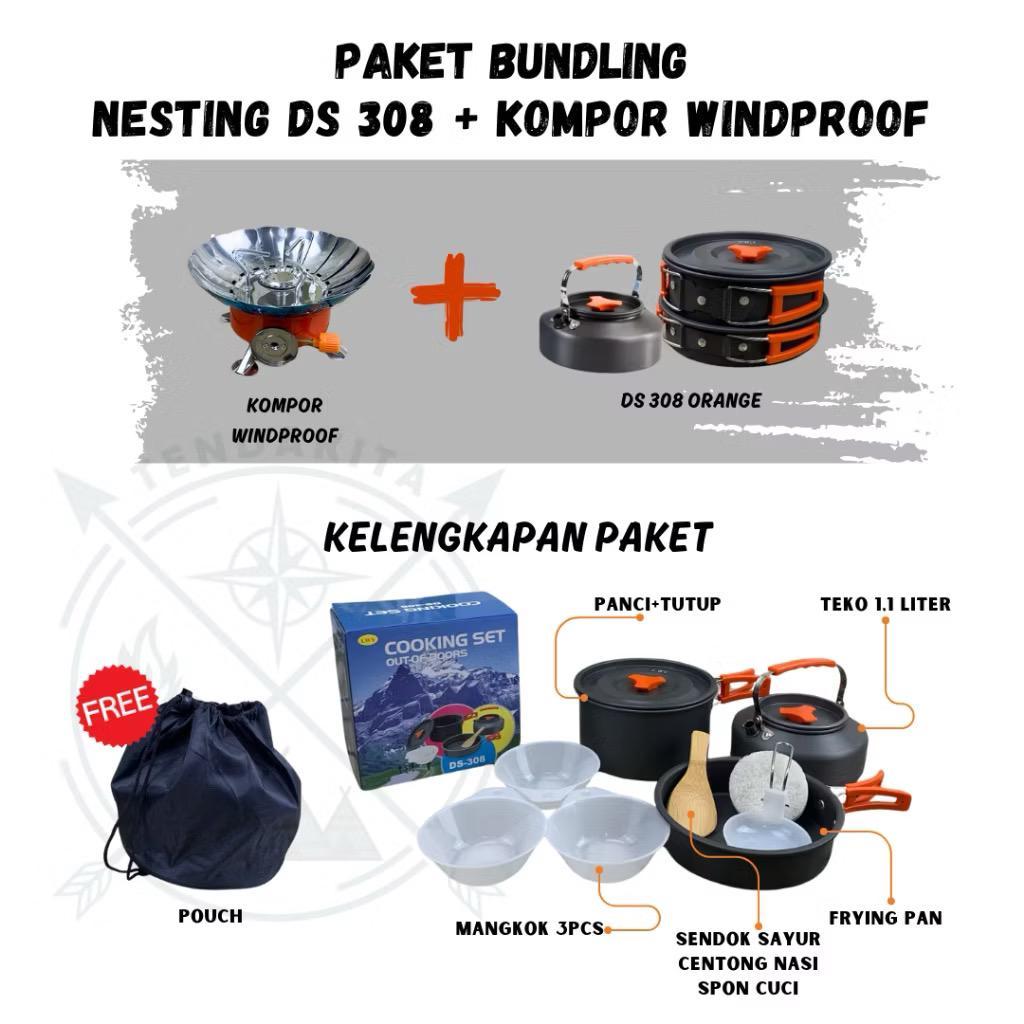 PAKET COOKING SET DS 311 + KOMPOR BUNGA PAKET ALAT MASAK CAMPING | FRYING PAN TENDAKI DS 308 | DS 311 TC311 | TC 200 | T