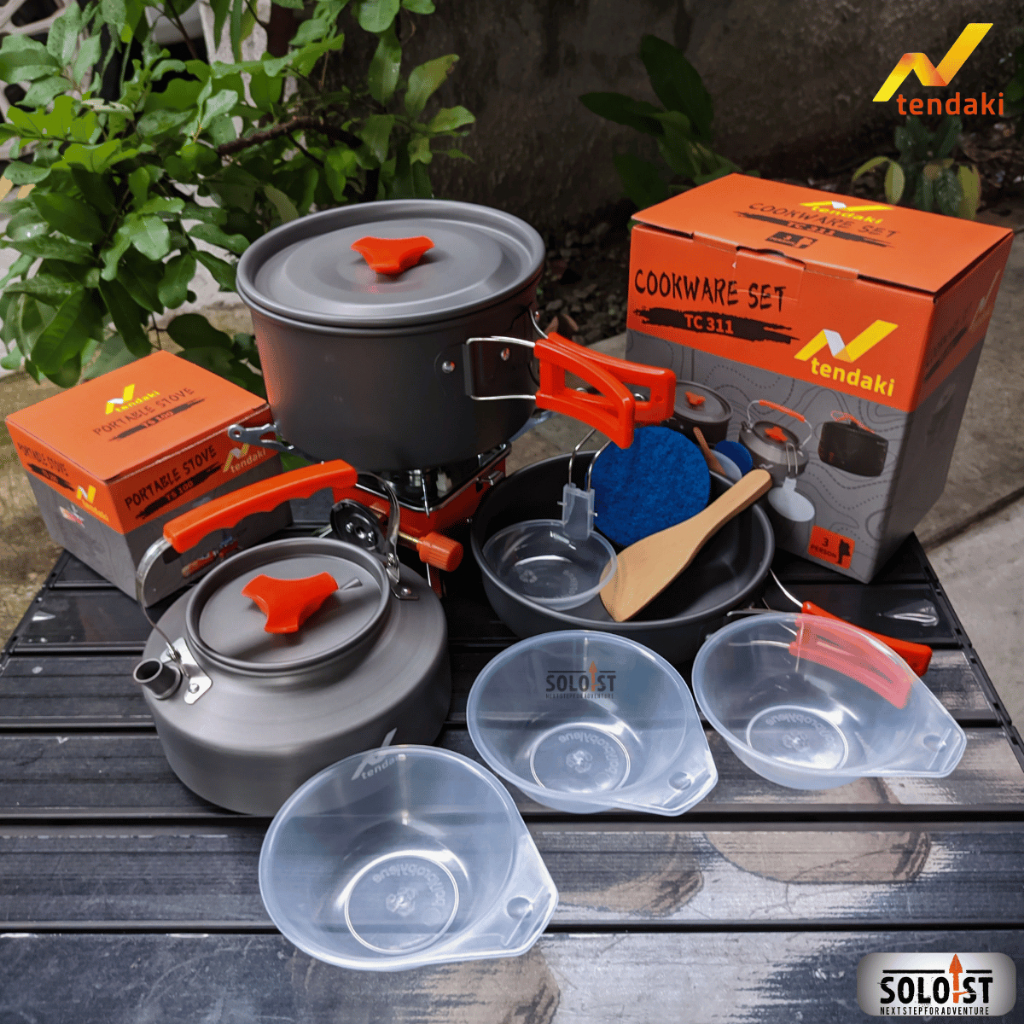 Paket Hemat Cooking Set + Kompor | Alat Masak Camping Portable + Camping Stove - Alat Masak Set Camping Mini Kemah Rekre