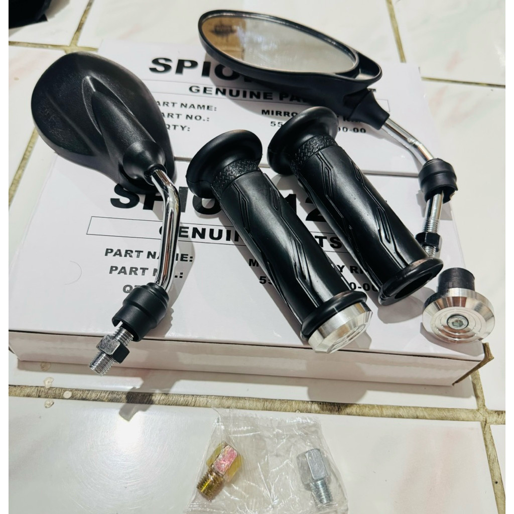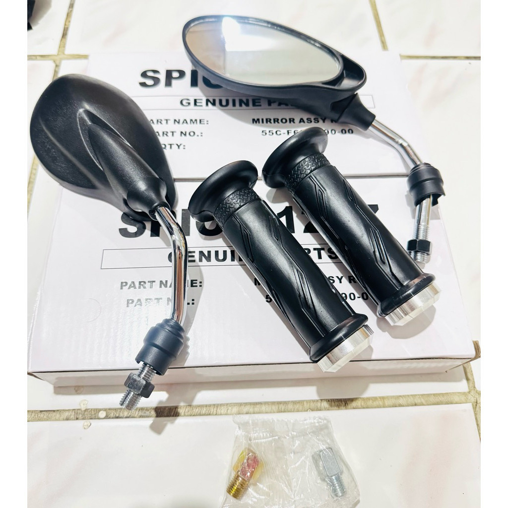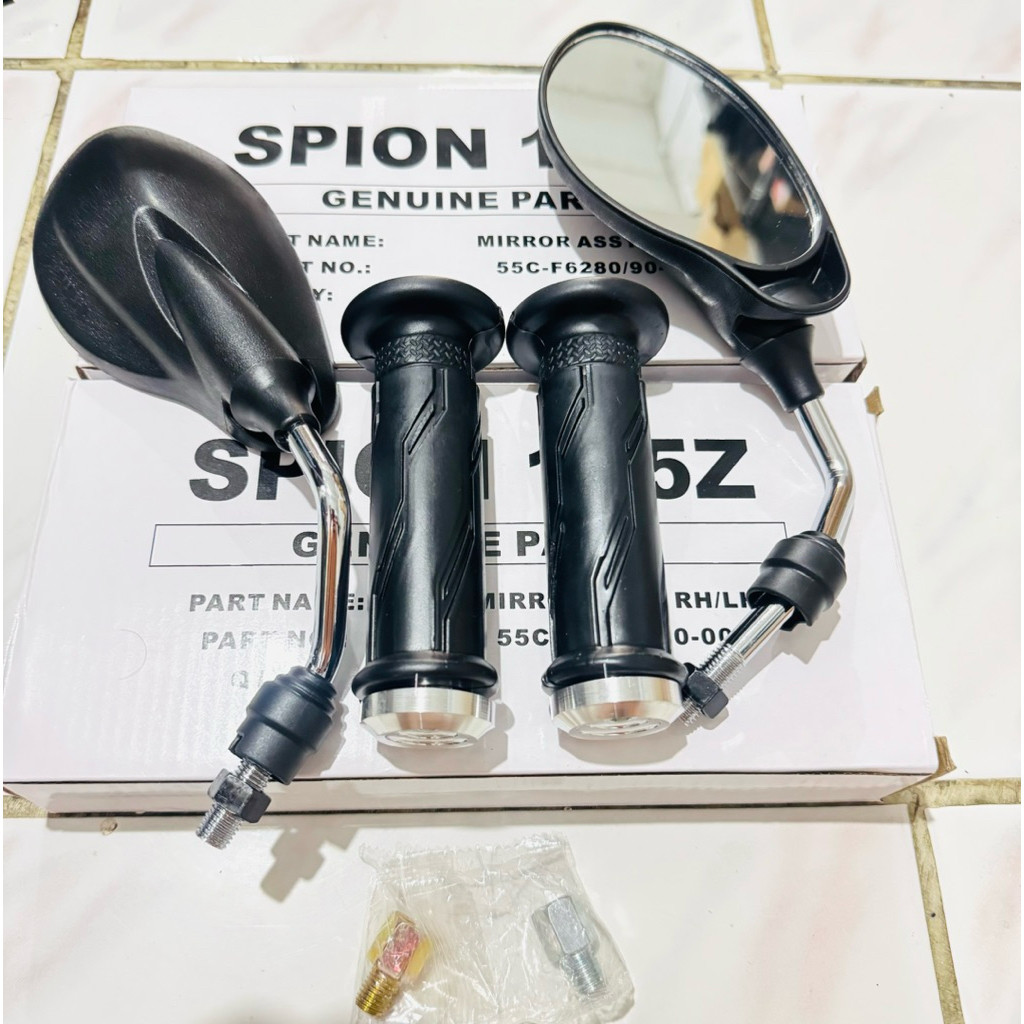 (paket hemat)kaca spion YMH x1 125z tangkai Chrome+grip ymha plus jalu heng Chrome universal