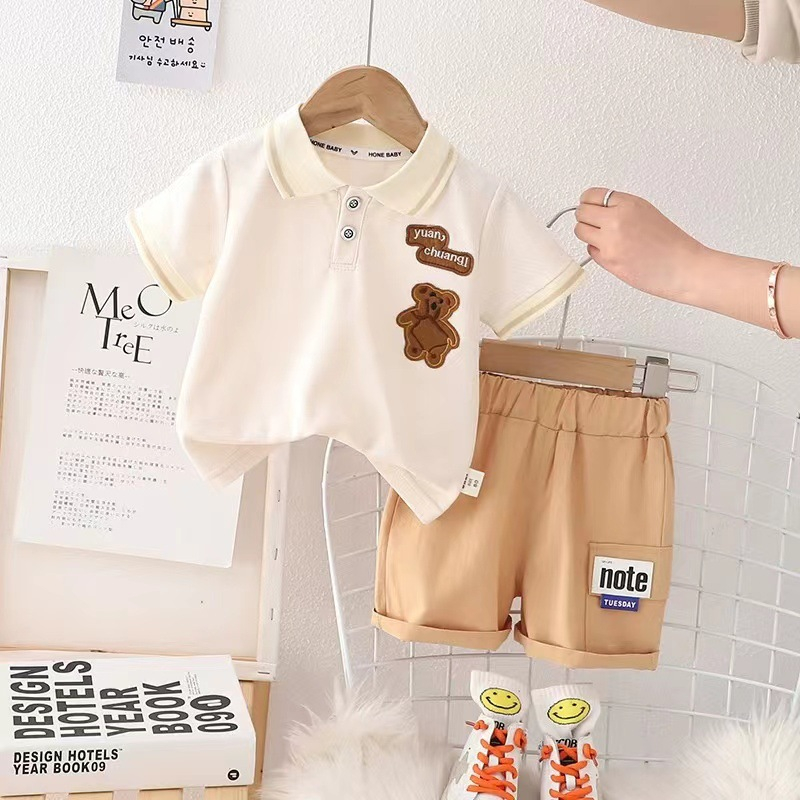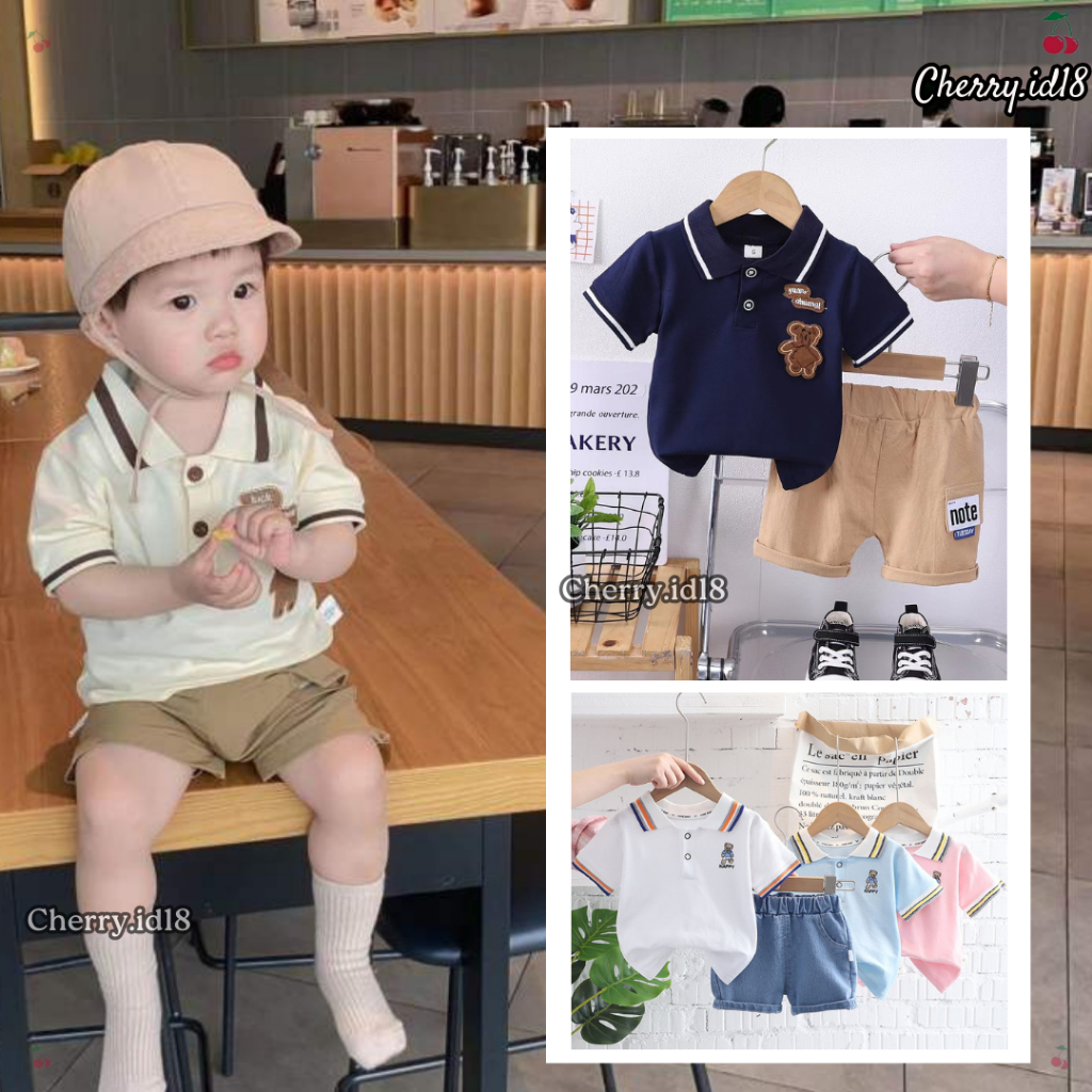 Setelan Polo Anak Laki Laki Perempuan Motif Bear Impor / Setelan Anak Kaos Kerah dan Celana SB55