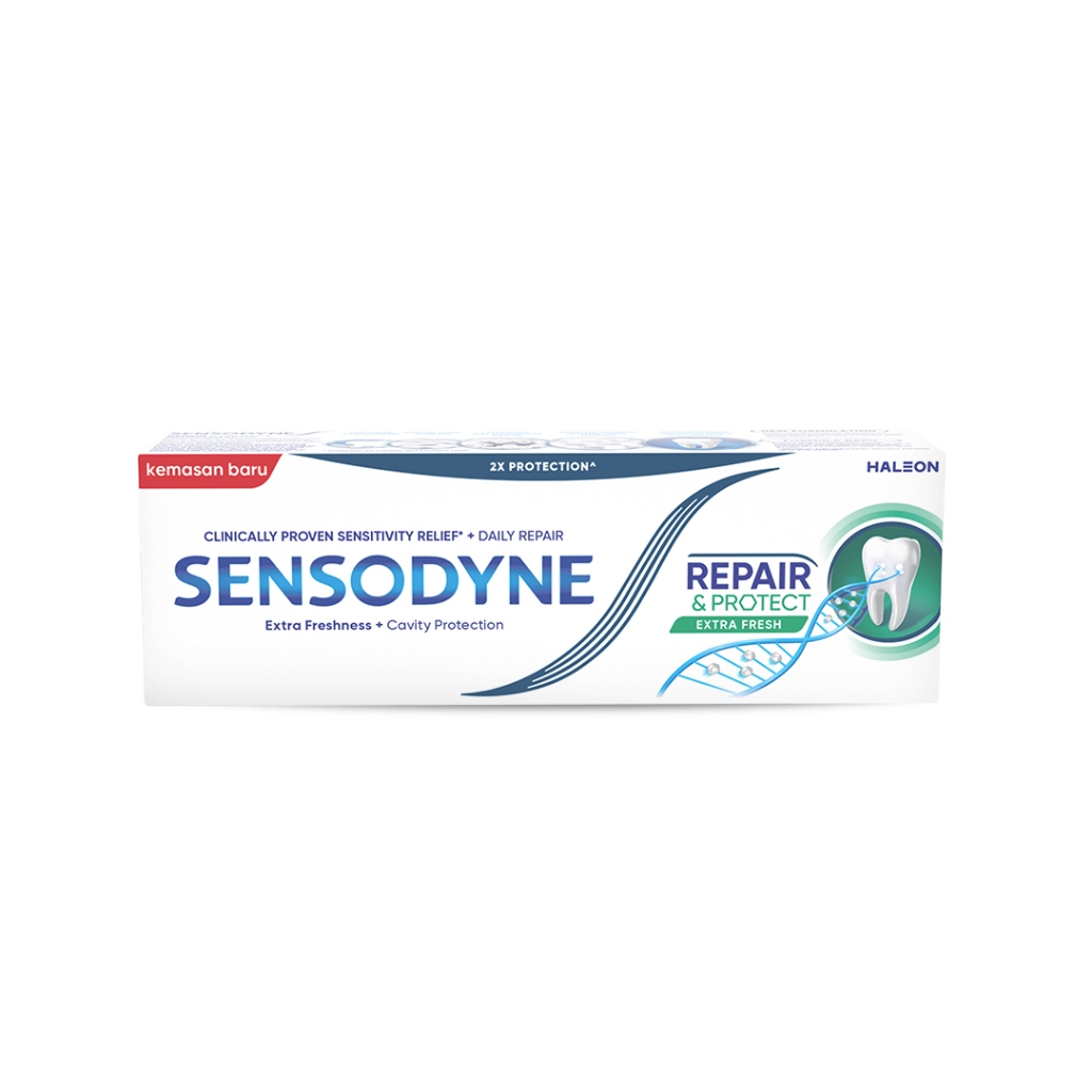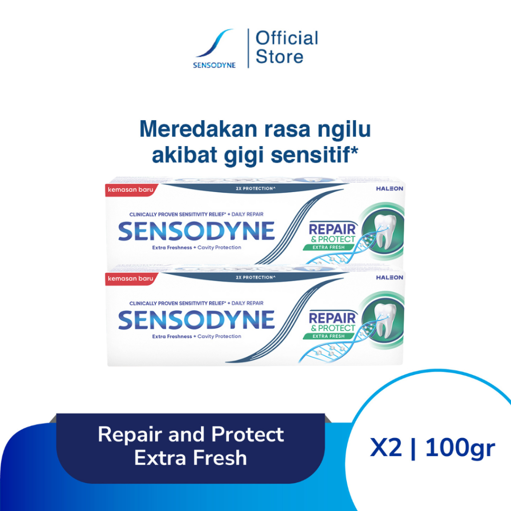 Sensodyne Toothpaste Pasta Gigi Sensitif Repair & Protect Memperbaiki Secara Menyeluruh + Kesegaran Extra Fresh 2x100gr