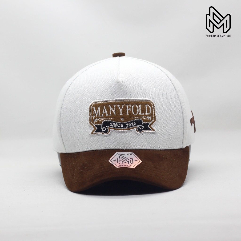 MANYFOLD - Topi visor pendek baseball kombinasi putih coklat bordir timbul premium distro