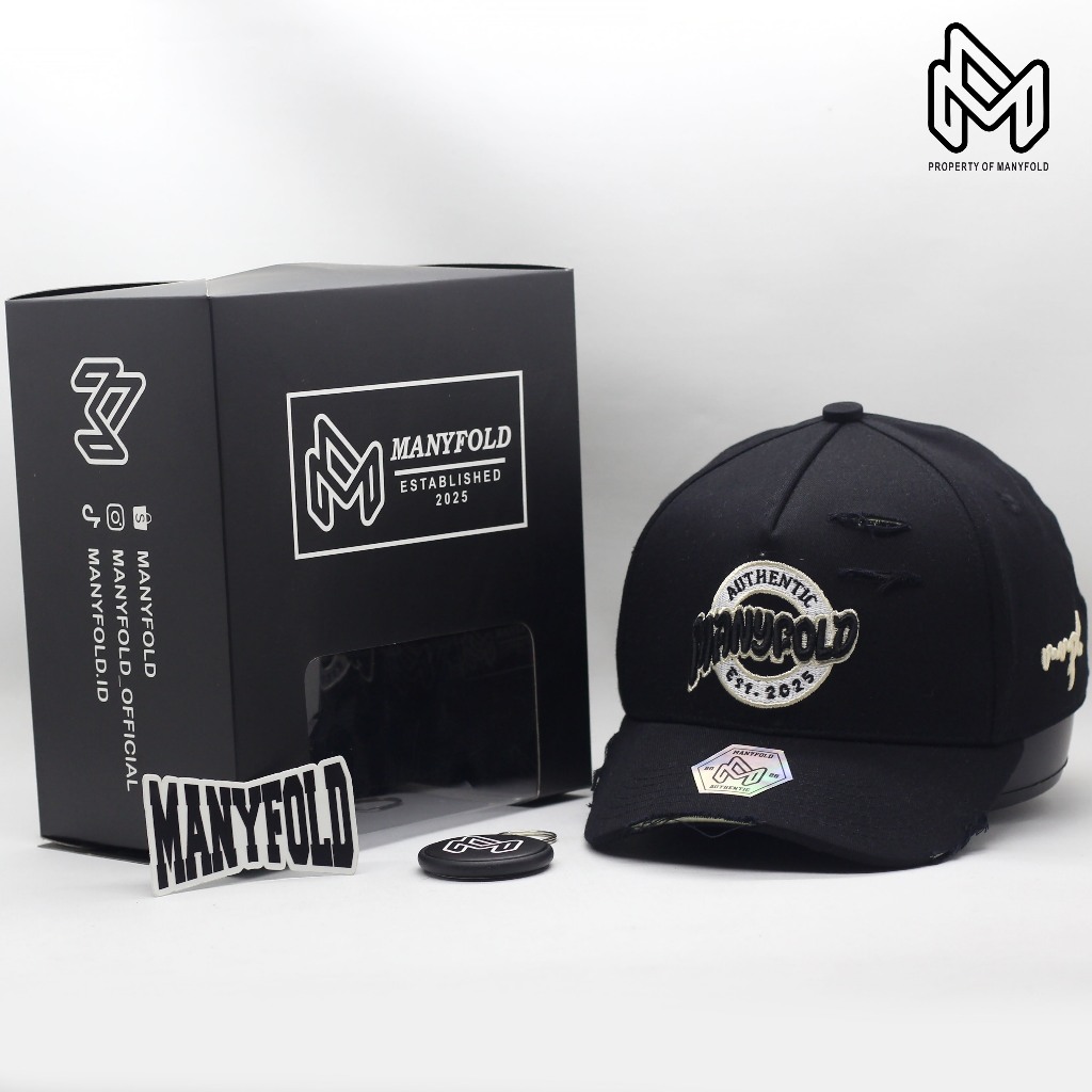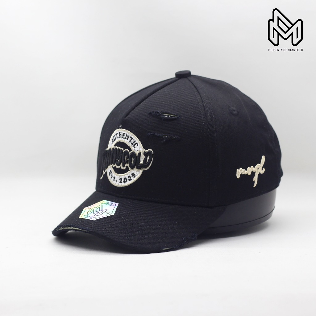 MANYFOLD - TOPI VISOR PENDEK SOBEK HITAM BORDIR TIMBUL PRIA WANITA PREMIUM DISTRO
