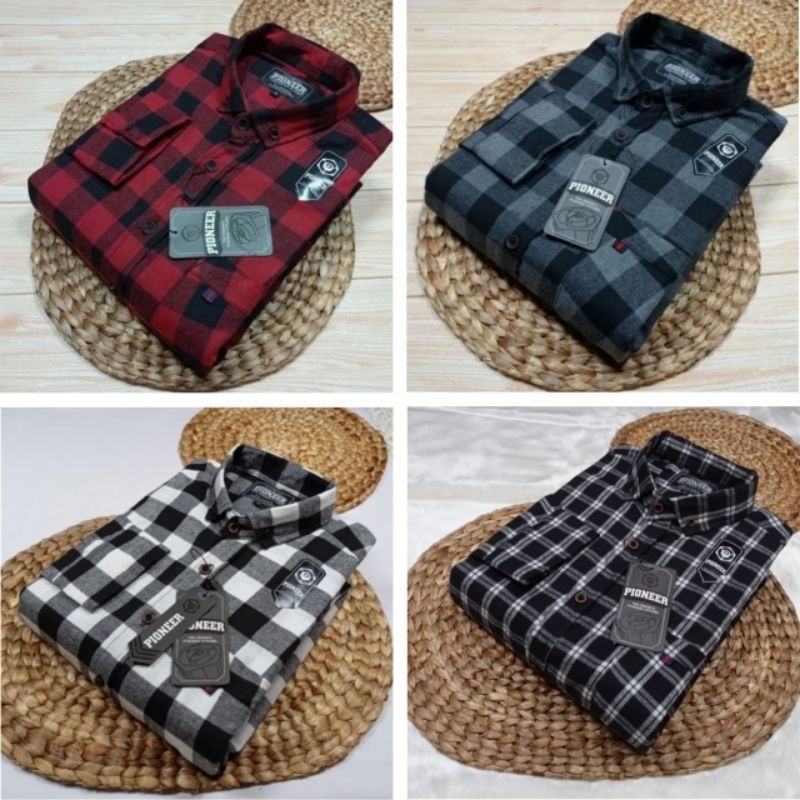 kemeja flanel pria premium lengan panjang motif kotak