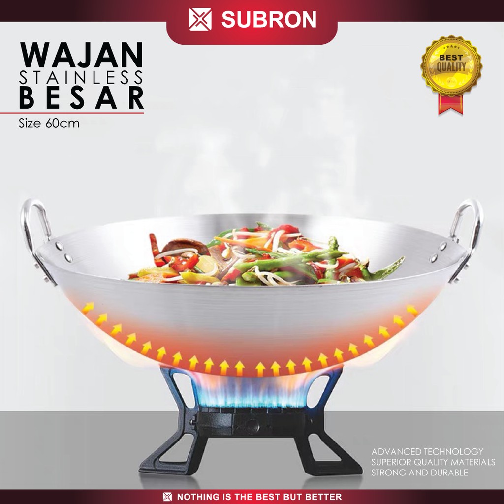 Wajan Penggorengan Anti Lengket SUBRON Wajan Kuali Stainless BGN MBG 60cm Masak Besar Jumbo Penggorengan