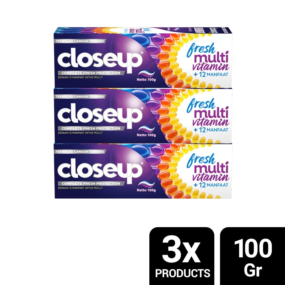 Closeup Pasta Gigi Fresh Multivitamin Complete Fresh Protection 100g Multi Benefit x 3