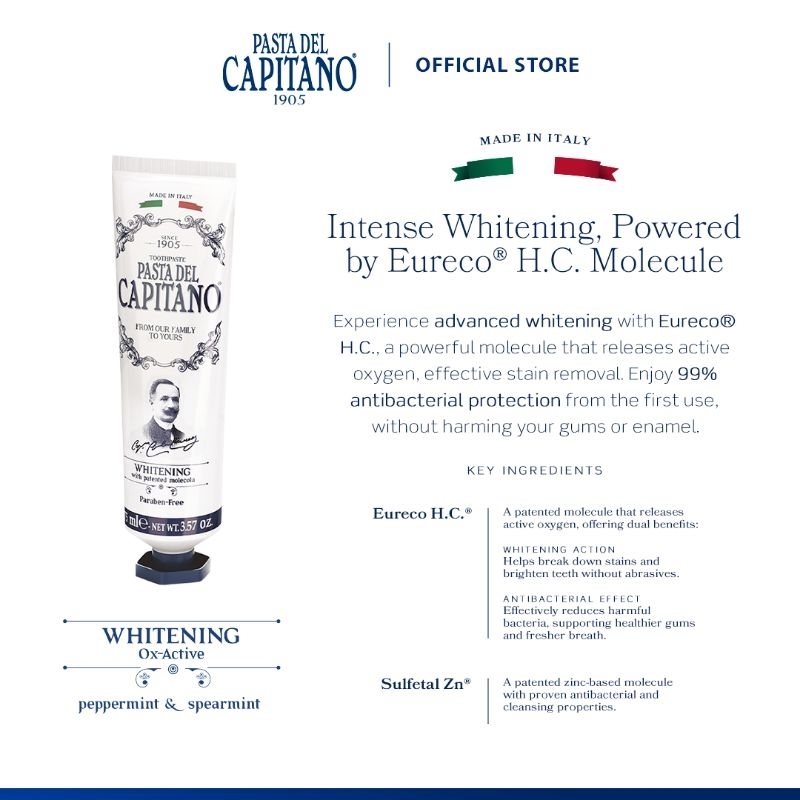 Pasta del Capitano 1905 Whitening Ox-Active Toothpaste | Pasta Gigi Pemutih Anti Bakteri
