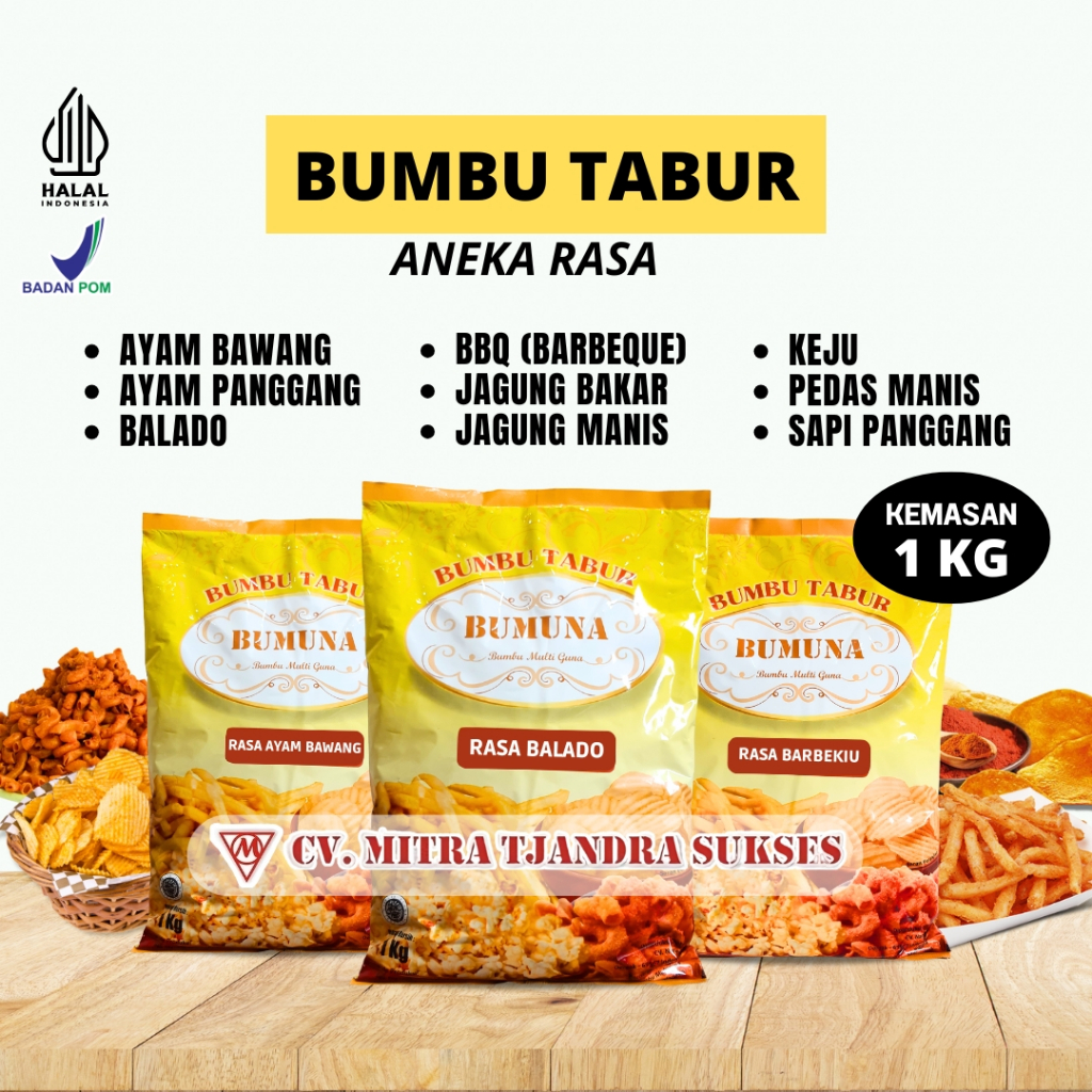 Bumbu Tabur " BUMUNA " Aneka Rasa Kan 1 KG an / Ayam Bawang / Ayam Panggang / BBQ / Balado / Keju / Jagung Manis / Jagun