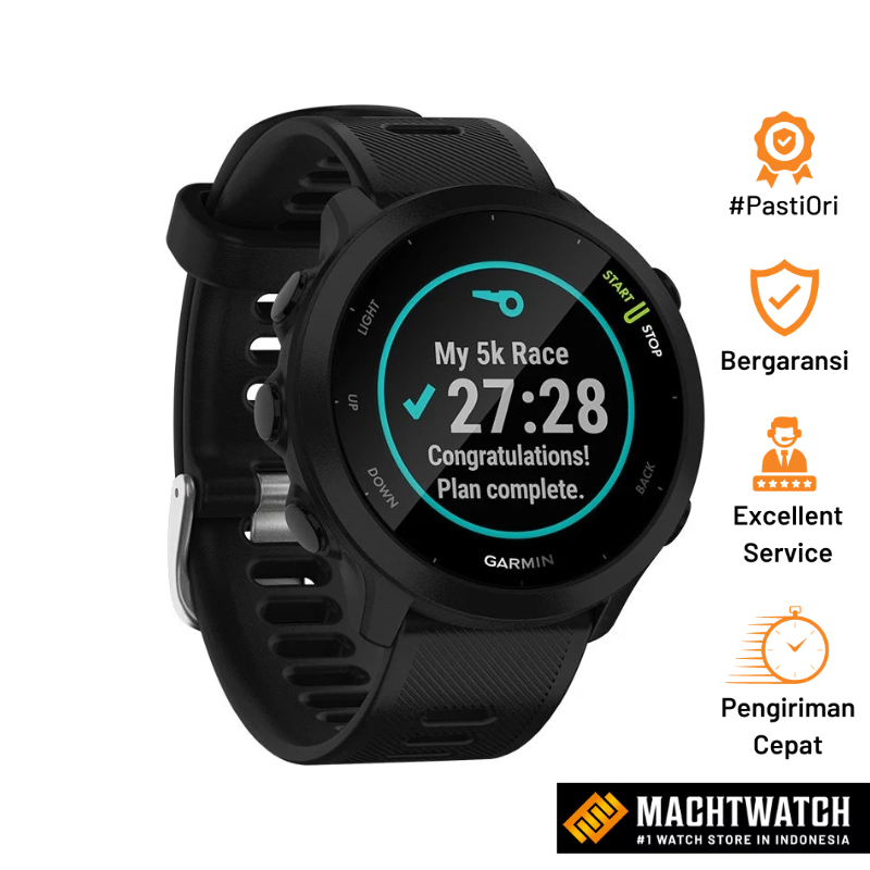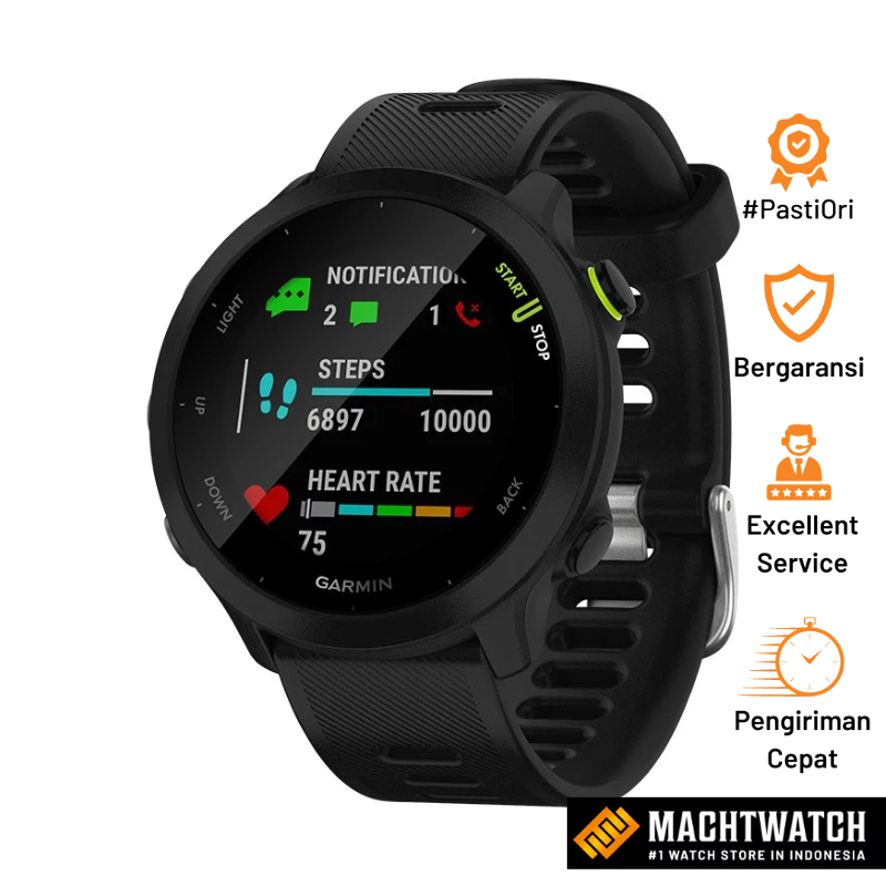 Jam Garmin Forerunner 55 010-02562-5A / 010-02562-50 Smartwatch Digital Dial Black Rubber Strap