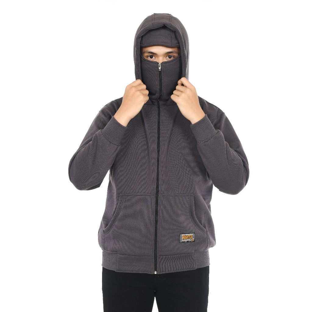 THEWANTER Hoodie Balaclava Zipper Jaket Boxy Hitam