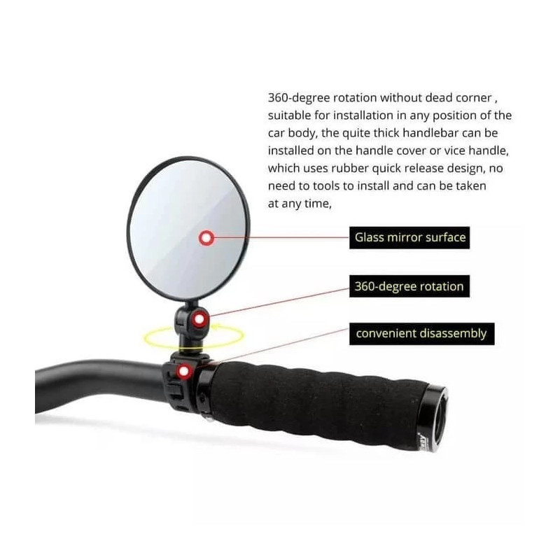 2PCS Kaca Spion Sepeda Stang Jalu 360 Derajat Adjustable Blindspot Mirror