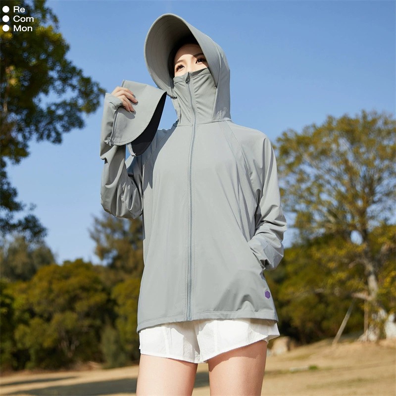 ReComMon Jaket Sport Anti UV UPF100+ Jaket Outdoor Wanita Pria, Hoodie Ringan, 2418