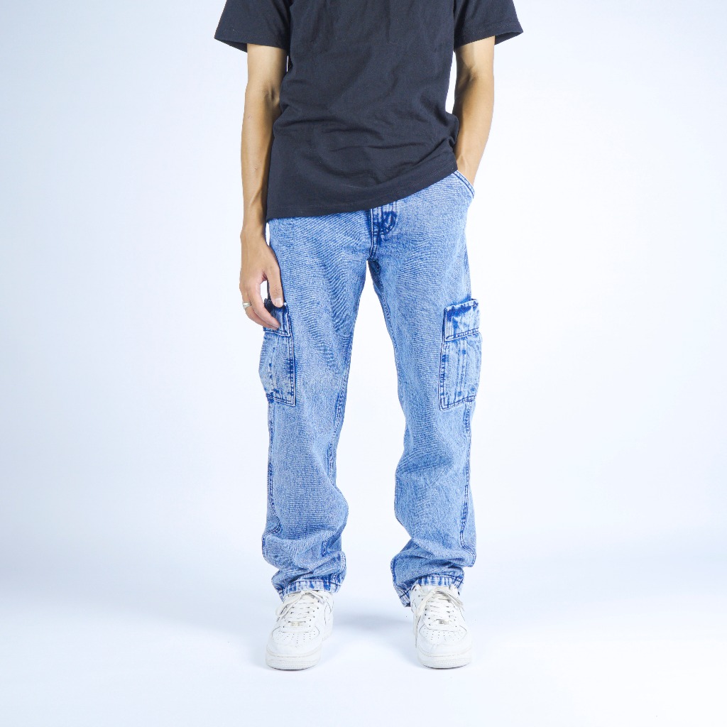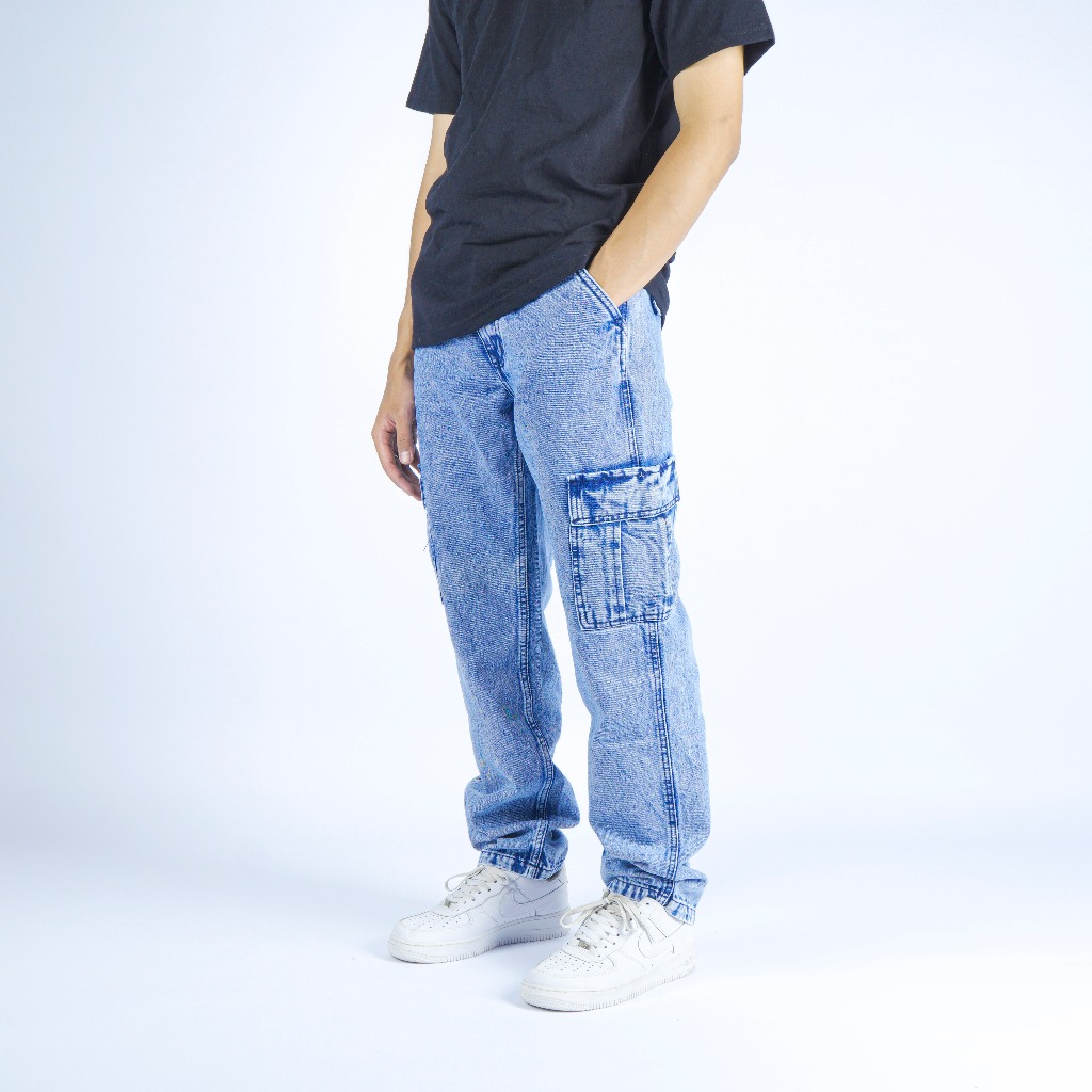 Superego Celana Cargo Jeans Pria Size 35-38 Reguler Loose Fit Long Pants Denim Light Blue SCPDW01B