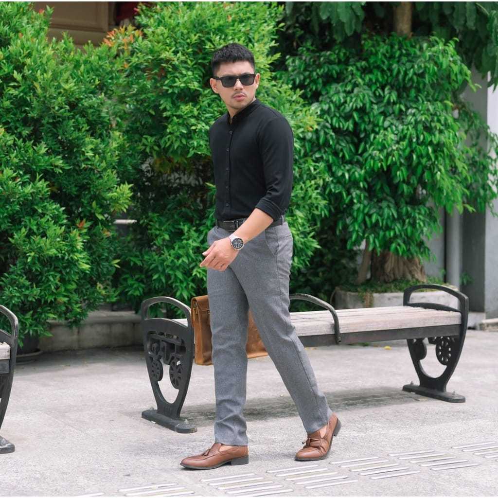 CELANA KANTOR FORMAL PRIA SLIMFIT BAHAN DASAR KAIN WOLL HITAM NAVY ABU PANJANG
