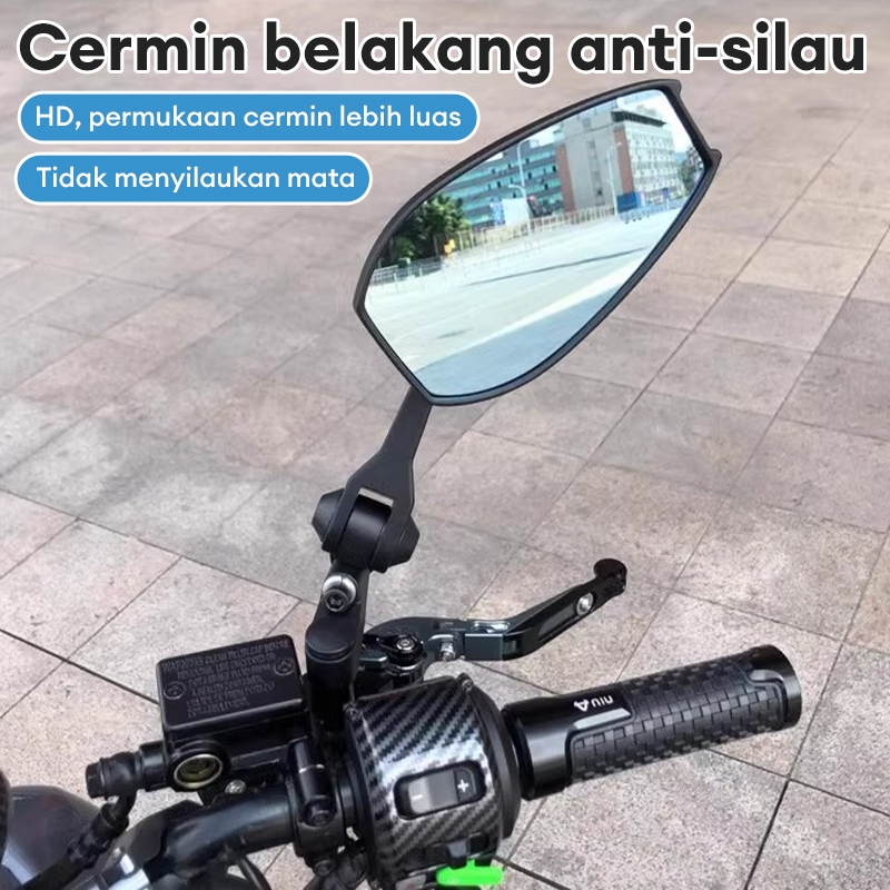 ThrustLine Spion Motor Cermin biru dan putih anti silau/ spion spion variasi universal semua motor spion lipat/dapat diputar 360 derajat/kkuningan mengkilapan kotak hadiah