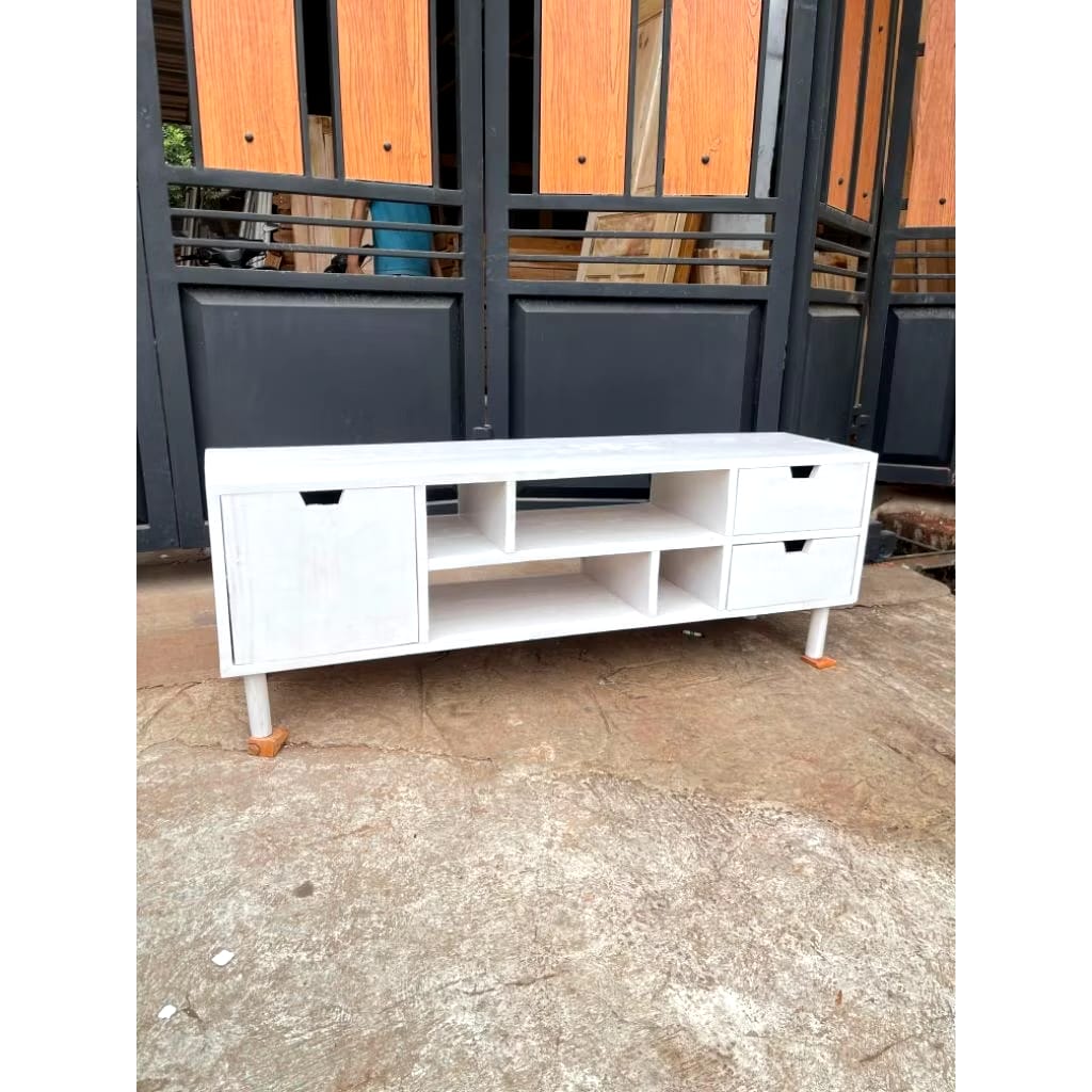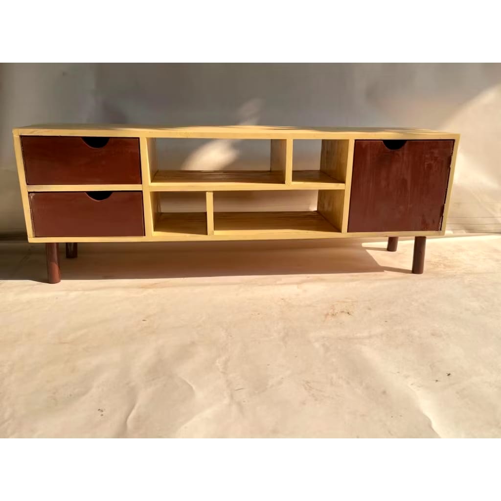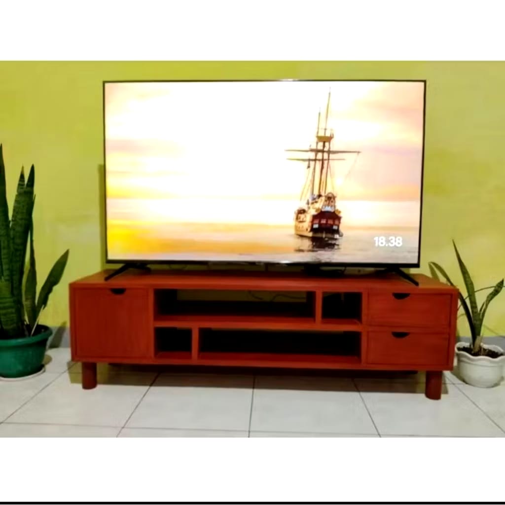 Meja TV Minimalis Modern terbuat dari kayu mahoni Great A perhutani produksi langsung