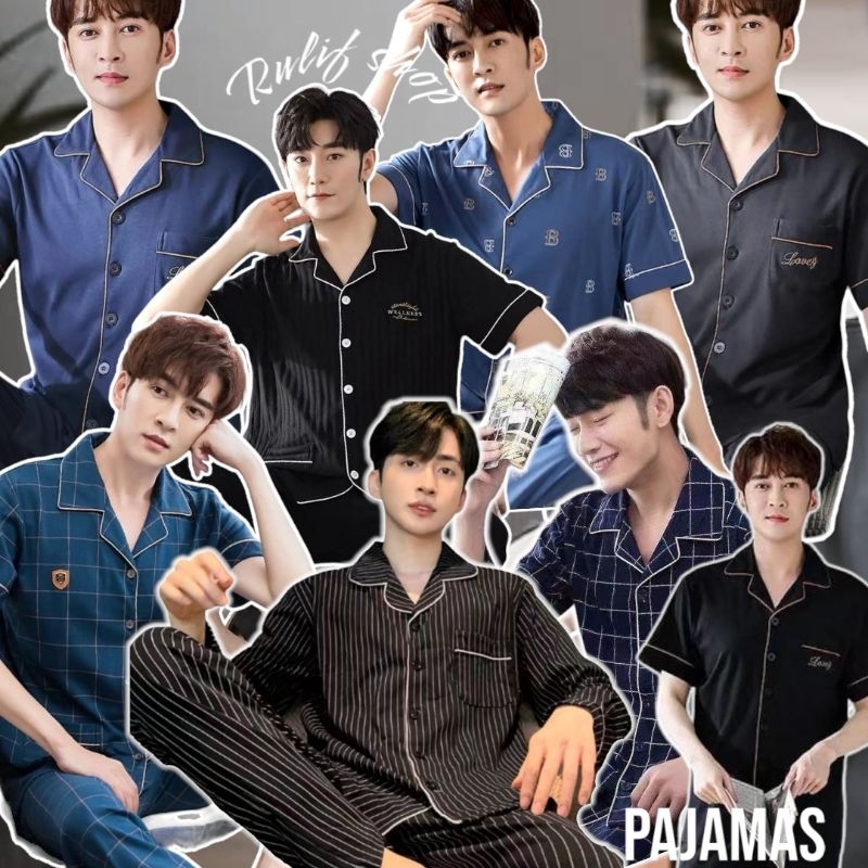 RULIF BAJU TIDUR PRIA PIYAMA DEWASA BAHAN KATUN TEBAL /SETELAN PRIA PP KRAH KANCING PREMIUM